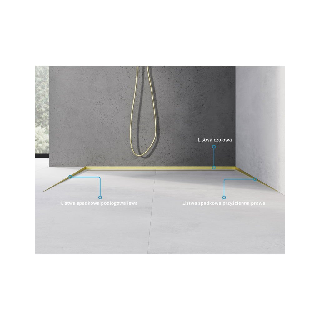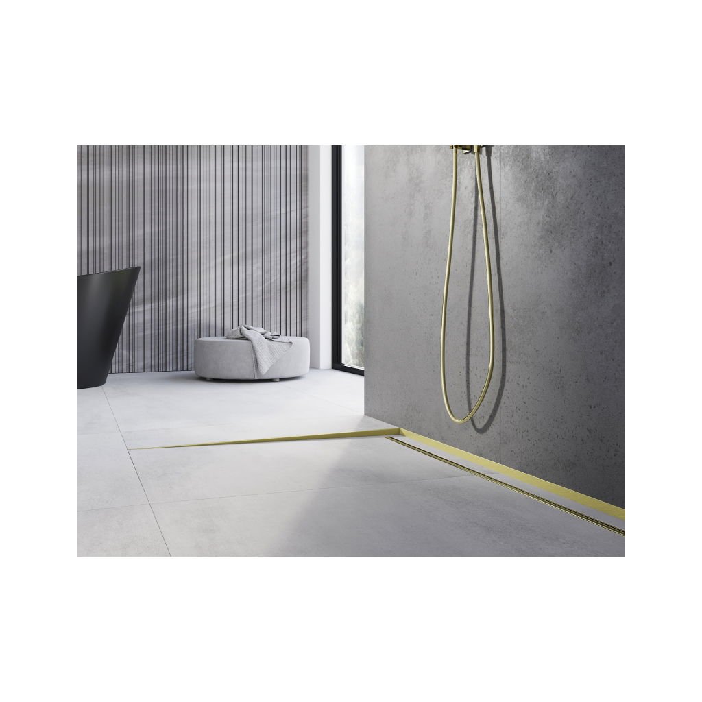 A szegélyléc oldalsó széle egyoldalú lejtést biztosít a lineáris lefolyó felé anélkül, hogy úgynevezett burokra lenne szükség.