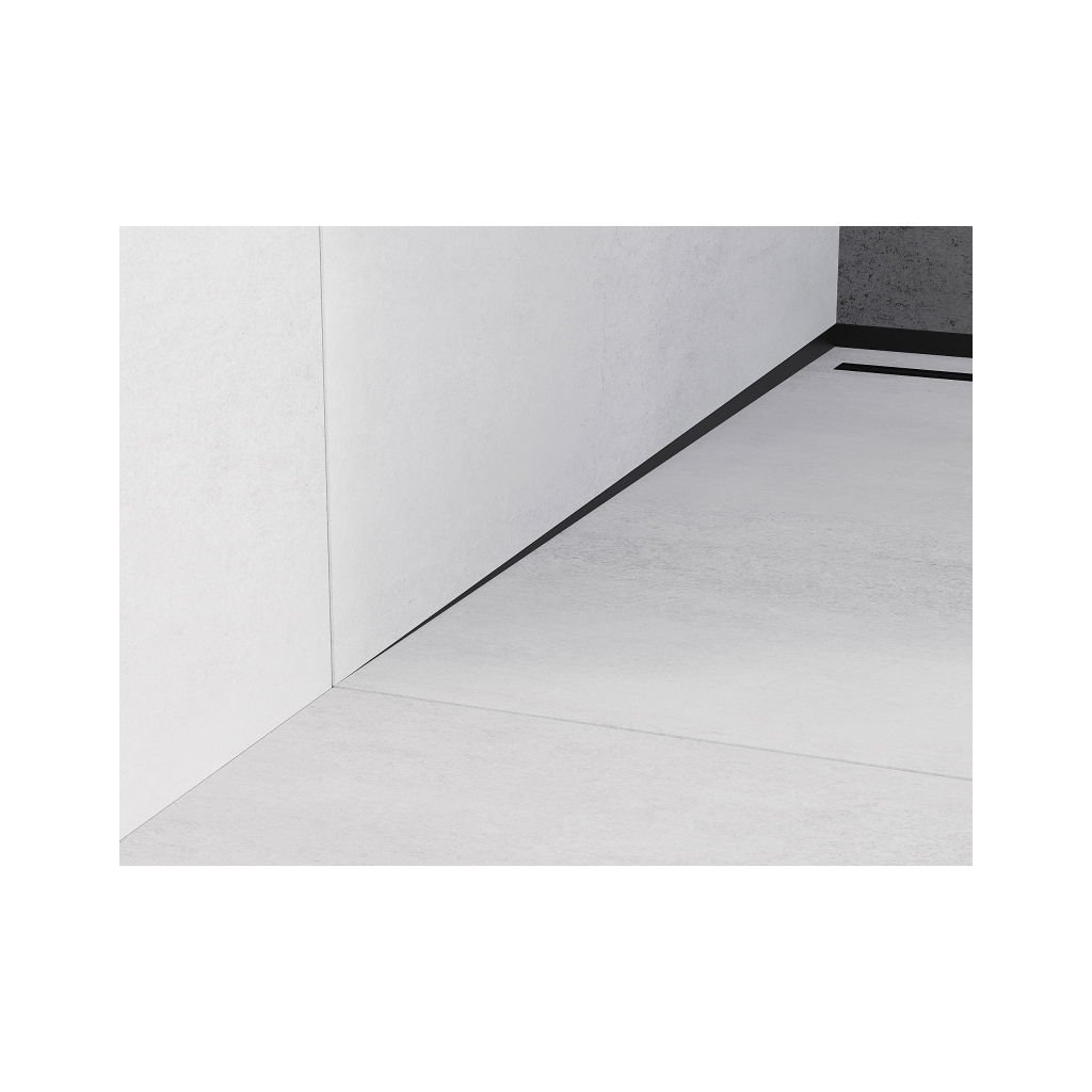 A szegélyléc oldalsó éle egyoldalú lejtést biztosít a lineáris lefolyó felé anélkül, hogy úgynevezett burkot kellene létrehozni.