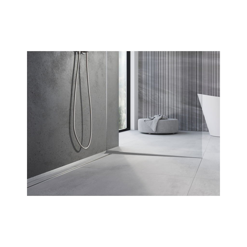 A szegélyléc oldalsó éle egyoldalú lejtést kényszerít a lineáris lefolyó felé anélkül, hogy úgynevezett burokra lenne szükség.