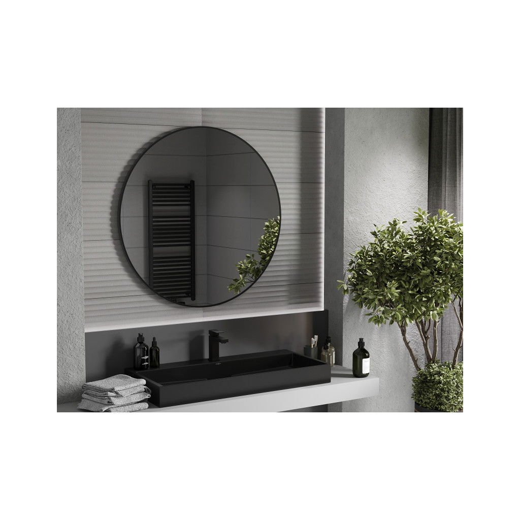 Mexen Loft, kerek fürdőszobai tükör 100 cm, keret színe fekete matt, 9850-100-100-000-70