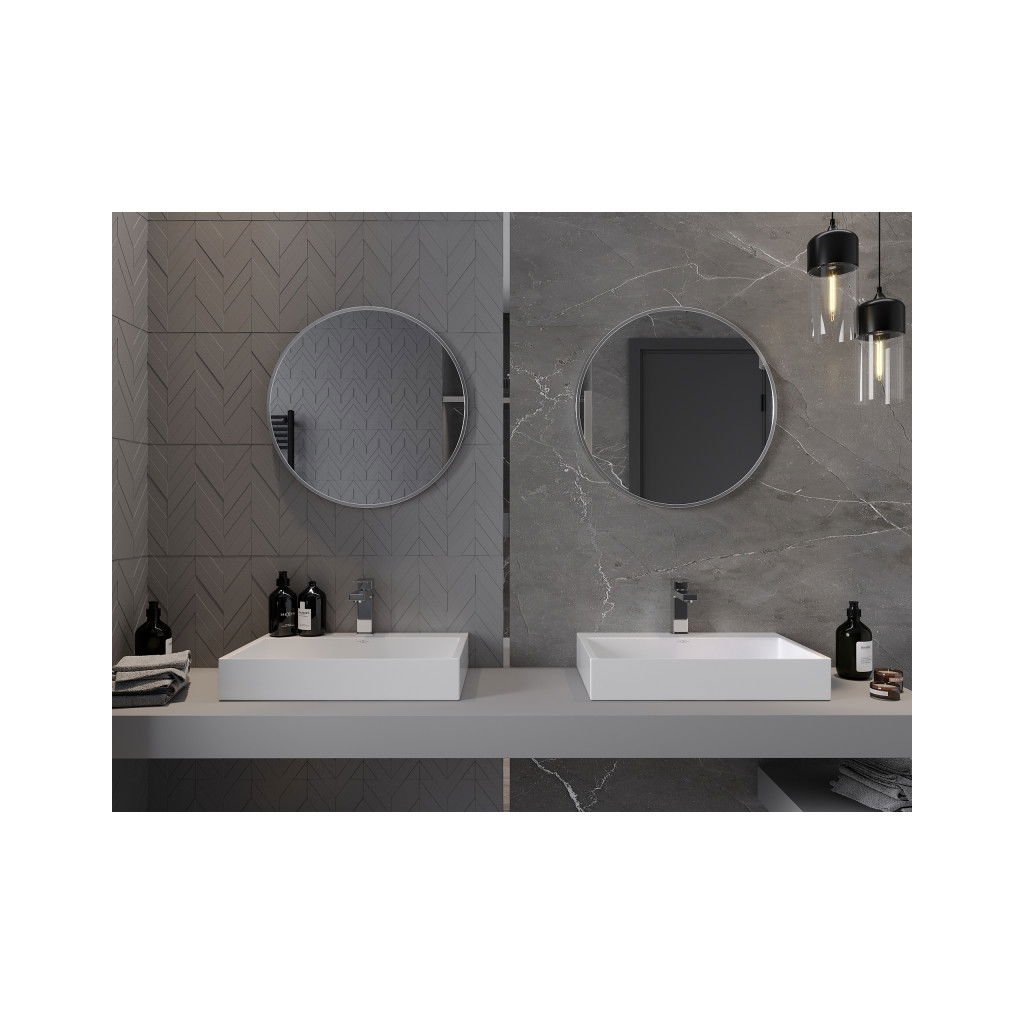 Mexen Loft, kerek fürdőszobai tükör 60 cm, keret színe szálcsiszolt acél, 9850-060-060-000-10