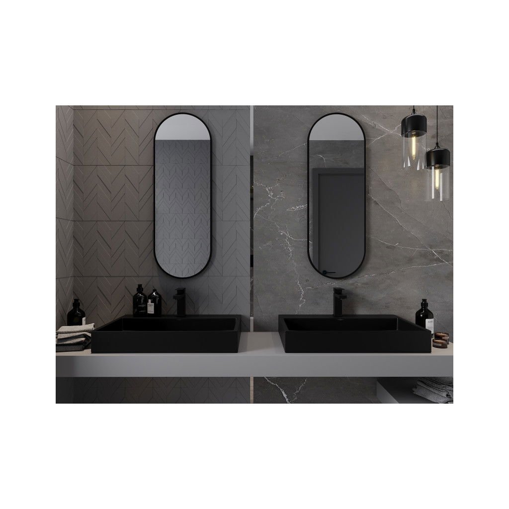 Mexen Loft, ovális fürdőszobai tükör 100 x 35 cm, keret színe fekete matt, 9851-100-035-000-70