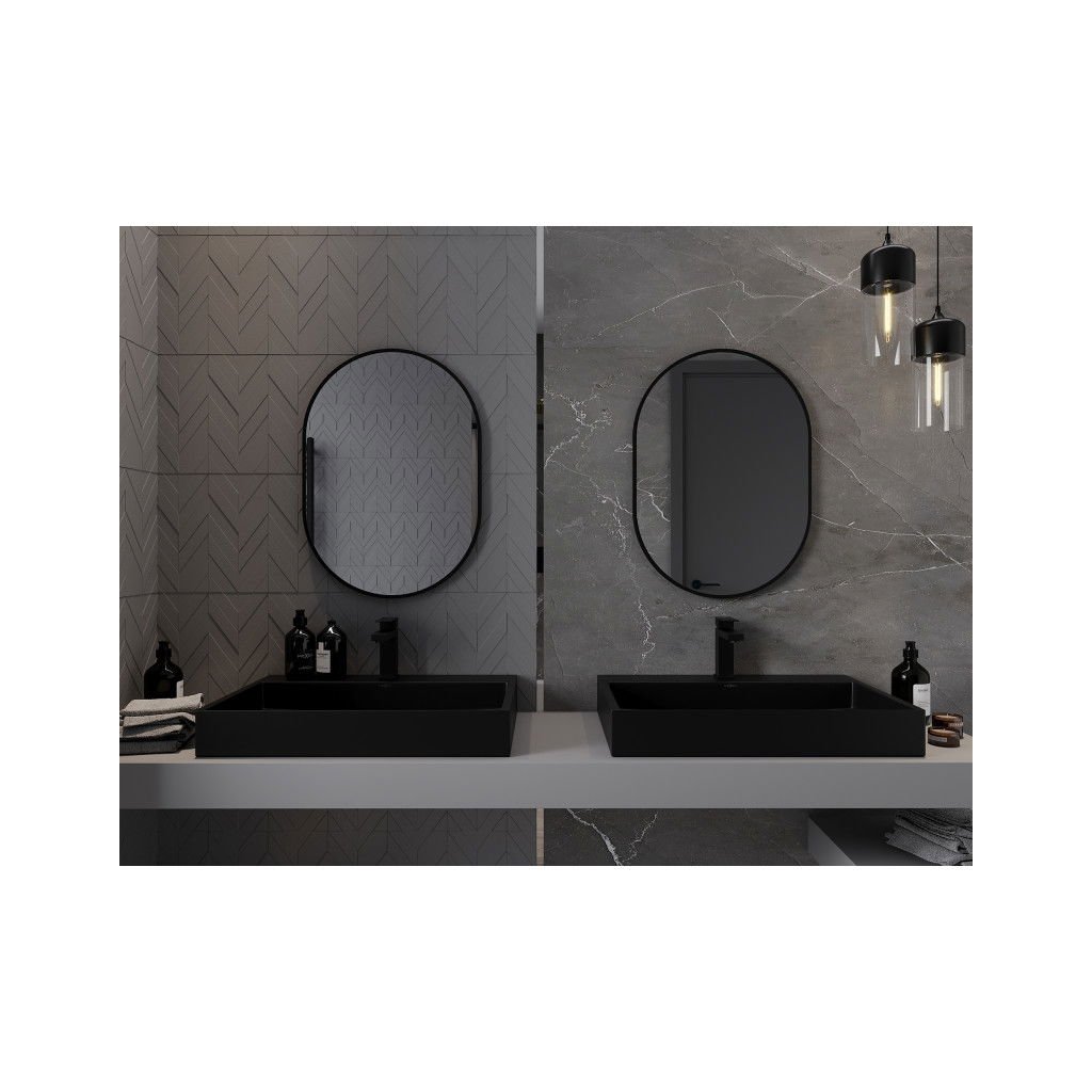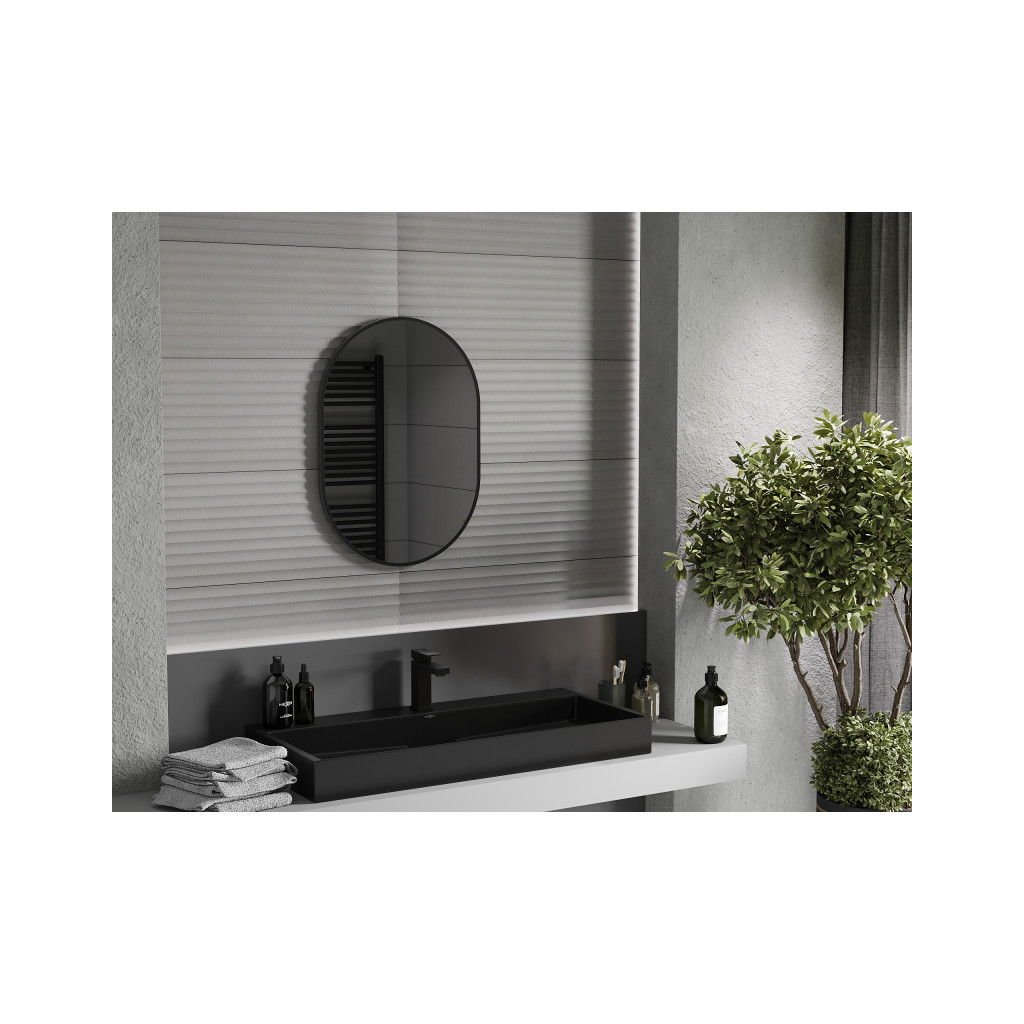 Mexen Loft, ovális fürdőszobai tükör 70 x 50 cm, keret színe fekete matt, 9851-070-050-000-70