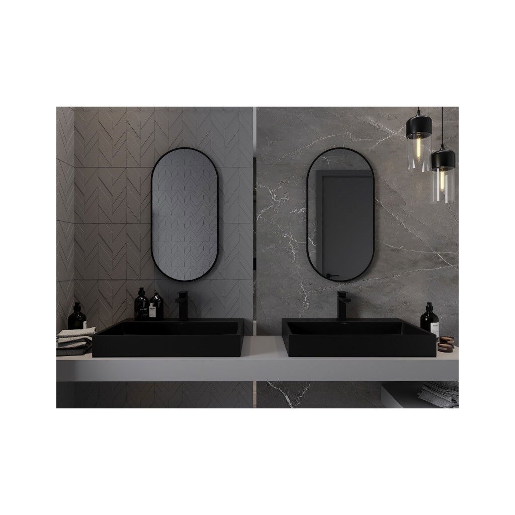 Mexen Loft, ovális fürdőszobai tükör 80 x 40 cm, keret színe fekete matt, 9851-080-040-000-70