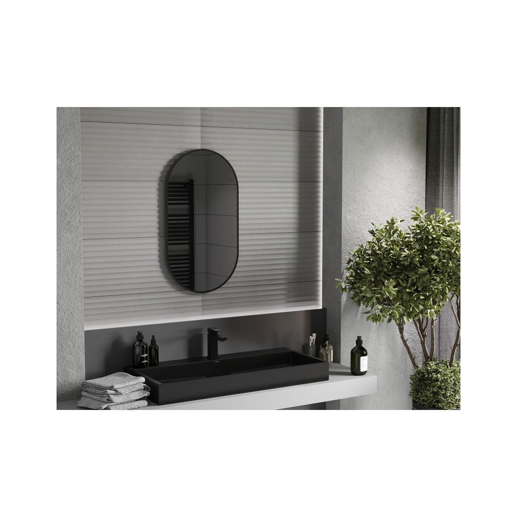 Mexen Loft, ovális fürdőszobai tükör 80 x 45 cm, keret színe fekete matt, 9851-080-045-000-70
