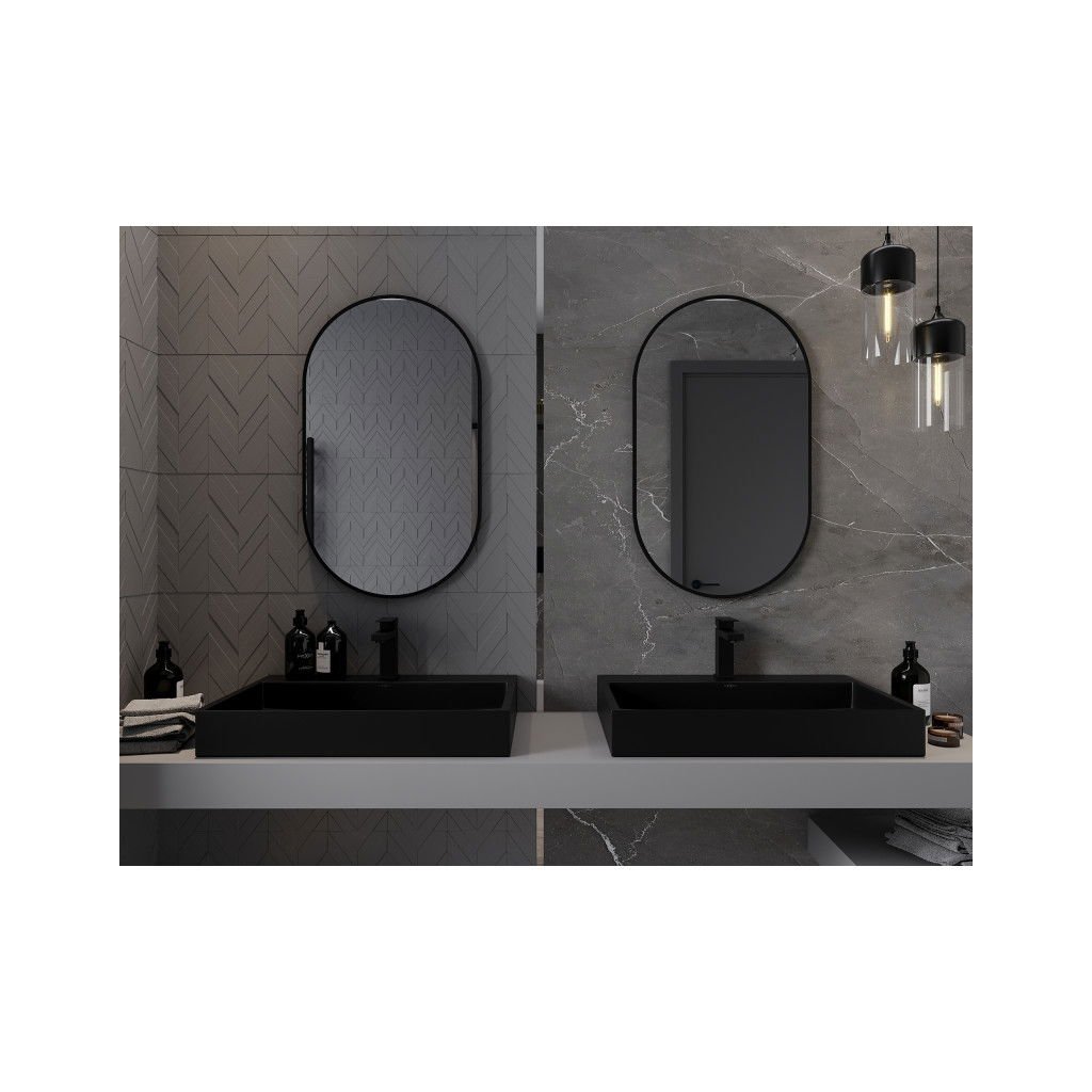 Mexen Loft, ovális fürdőszobai tükör 85 x 50 cm, keret színe fekete matt, 9851-085-050-000-70
