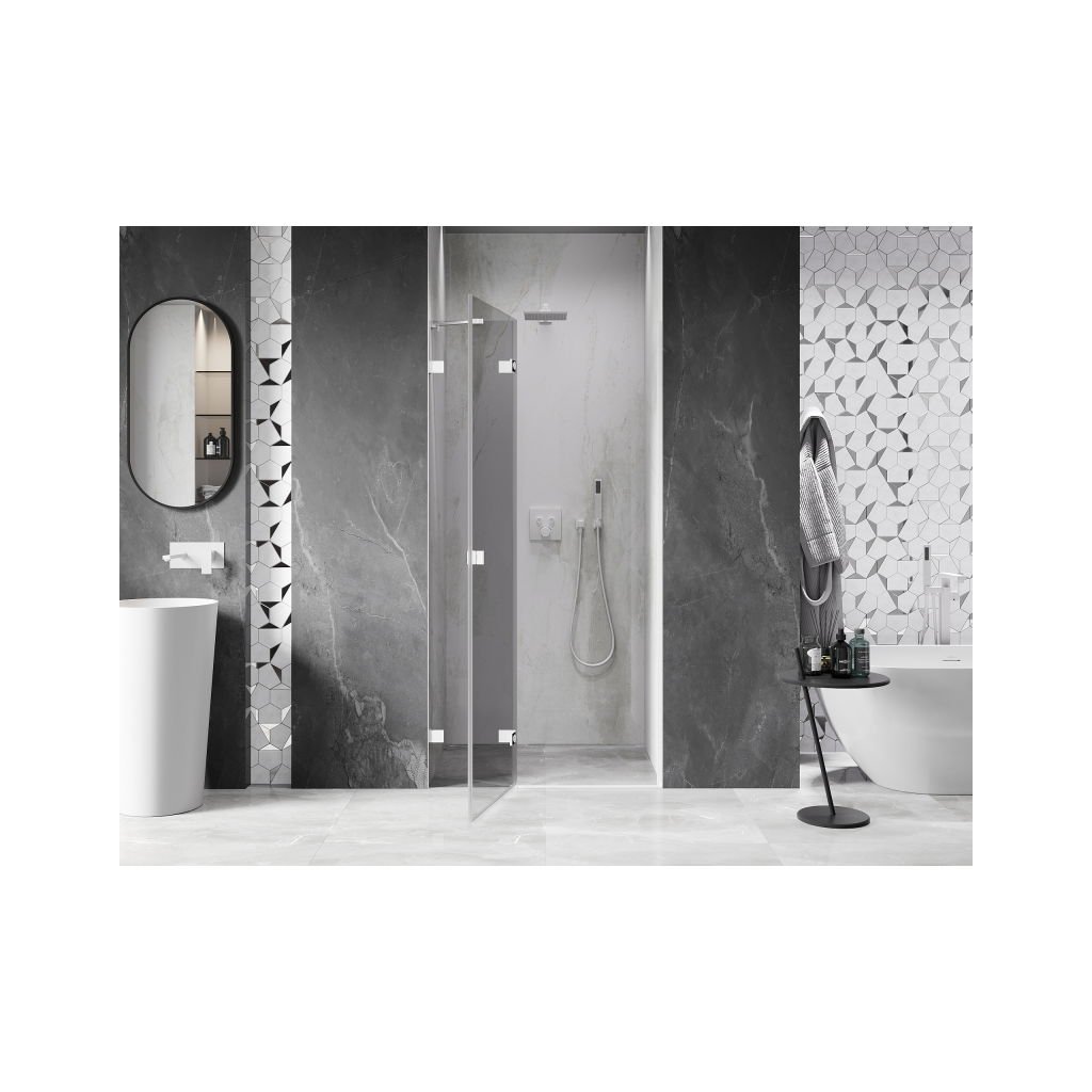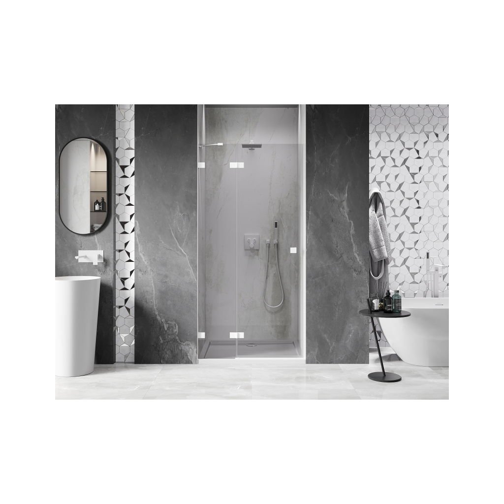 Több méretben kapható, stabil szerkezettel és csuklós ajtókkal rendelkezik. Az EasyClean felületű edzett üveg leegyszerűsíti a karbantartást, a fehér profil pedig modern fürdőszobákba illik.