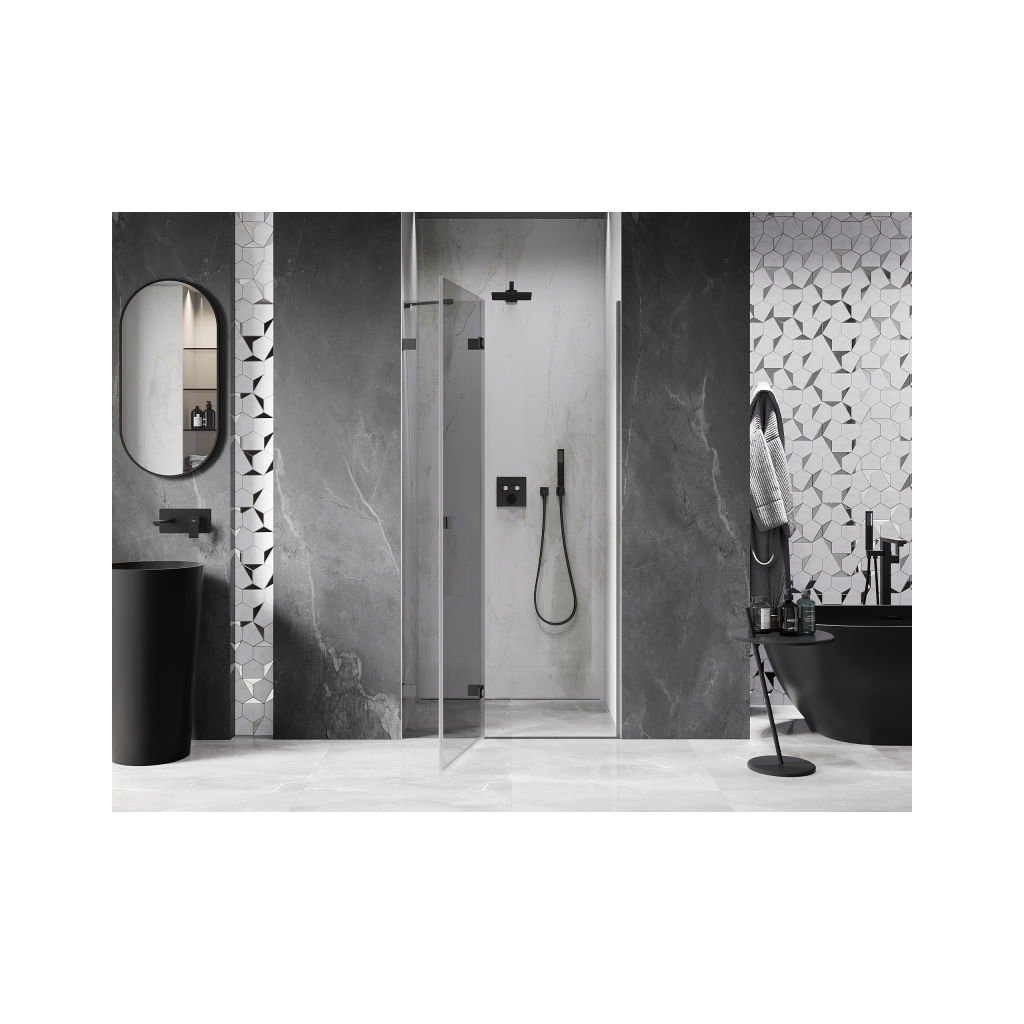 Több méretben kapható, stabil szerkezettel és csuklós ajtókkal rendelkezik. Az EasyClean felületű edzett üveg leegyszerűsíti a karbantartást, a grafit profil pedig modern fürdőszobákba illik.