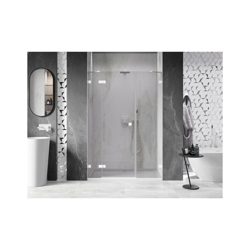 Több méretben kapható, stabil szerkezettel és csuklós ajtókkal rendelkezik. Az EasyClean felületű edzett üveg leegyszerűsíti a karbantartást, a fehér profil pedig modern fürdőszobákba illik.