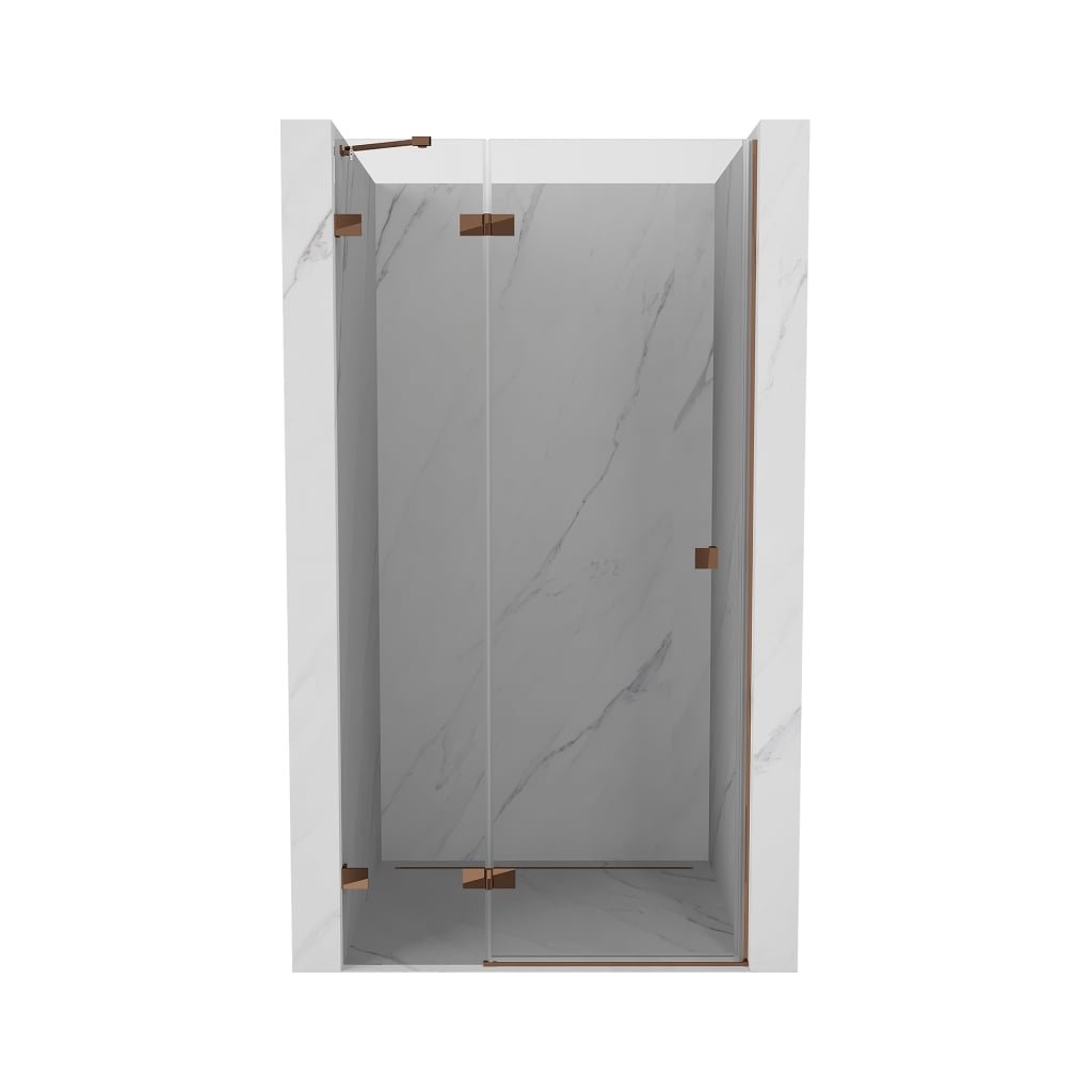 Több méretben kapható, stabil szerkezettel és csuklós ajtókkal rendelkezik. Az EasyClean felületű edzett üveg leegyszerűsíti a karbantartást, a rozéarany profil pedig modern fürdőszobákba illik.