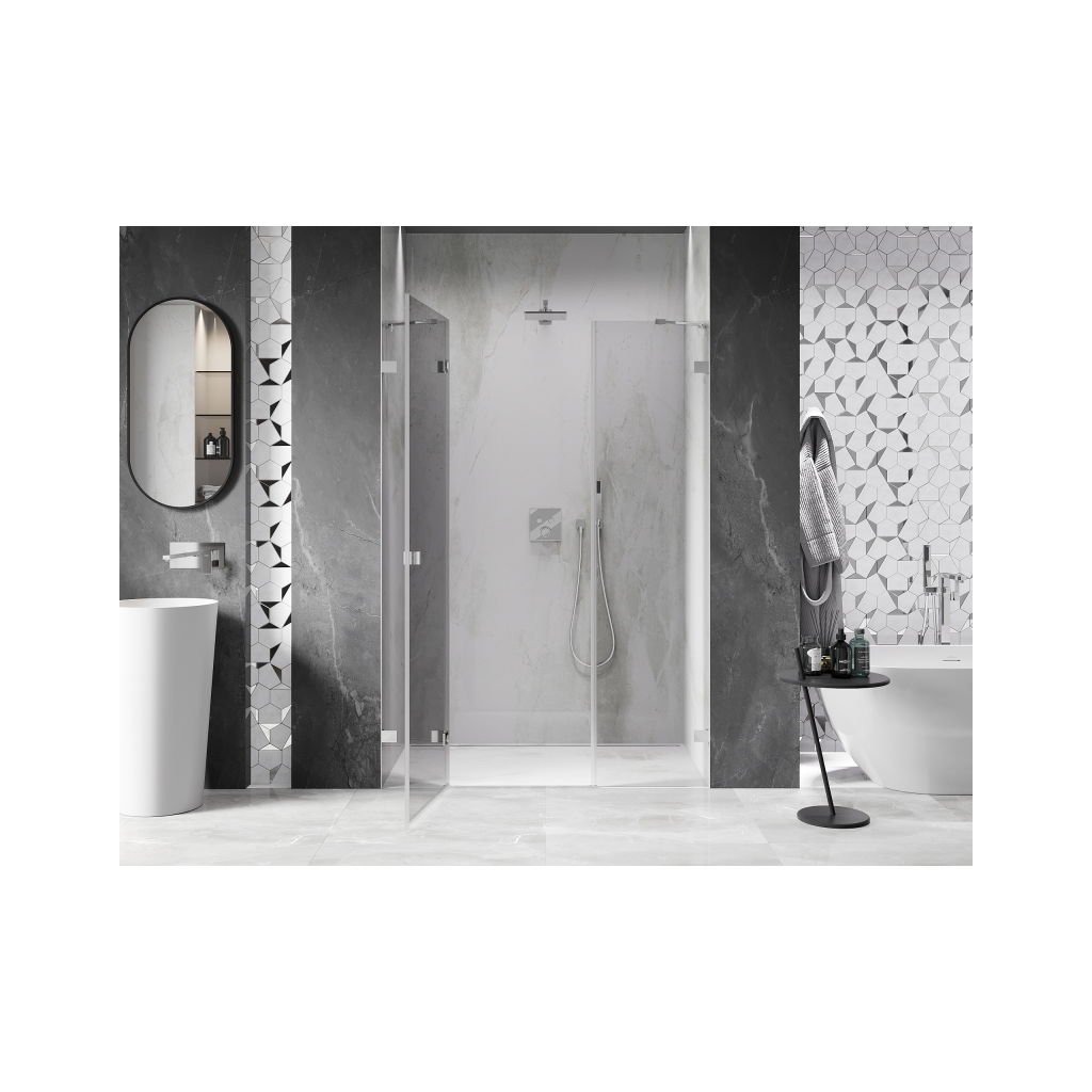 Több méretben kapható, stabil szerkezettel és csuklós ajtókkal rendelkezik. Az EasyClean felületű edzett üveg leegyszerűsíti a karbantartást, a króm profil pedig modern fürdőszobákba illik.