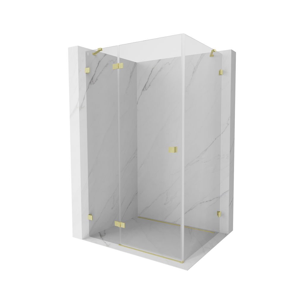 75 × 90 cm-es konfigurációban stabil szerkezetet és csuklós (szárnyas) ajtókat kínál. Az EasyClean felületű edzett üveg leegyszerűsíti a karbantartást, a szálcsiszolt arany profil pedig modern fürdőszobákba illik.