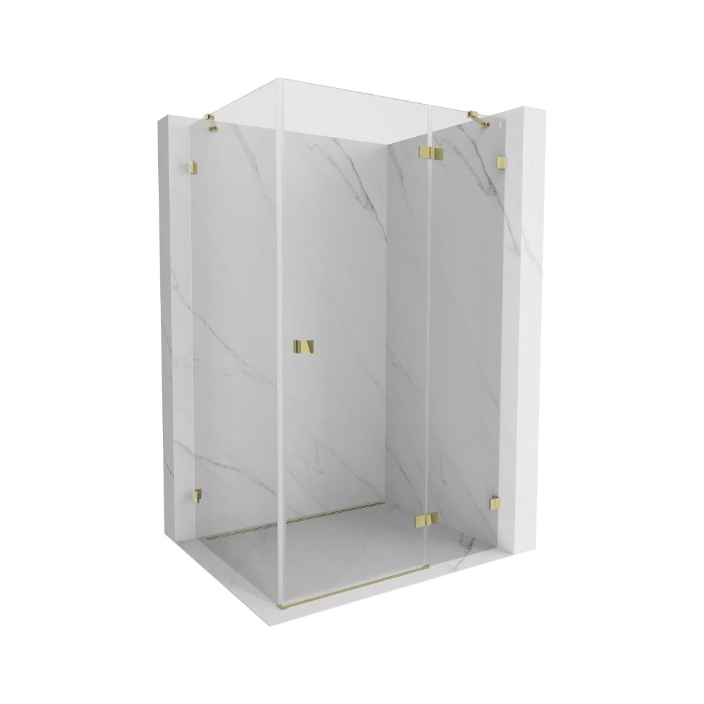 80 × 90 cm-es konfigurációban stabil szerkezetet és csuklós (szárnyas) ajtókat kínál. Az EasyClean felületű edzett üveg leegyszerűsíti a karbantartást, az aranyfényű profil pedig modern fürdőszobákba illik.