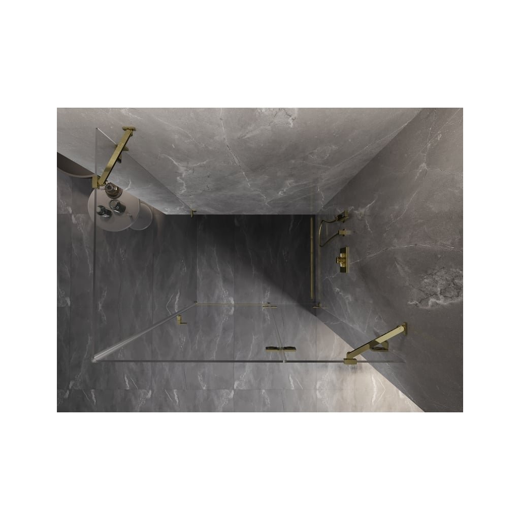 70 × 80 cm-es konfigurációban stabil szerkezetet és csuklós (szárnyas) ajtókat kínál. Az EasyClean felületű edzett üveg leegyszerűsíti a karbantartást, a fényes arany árnyalatú profil pedig modern fürdőszobákba illik.
