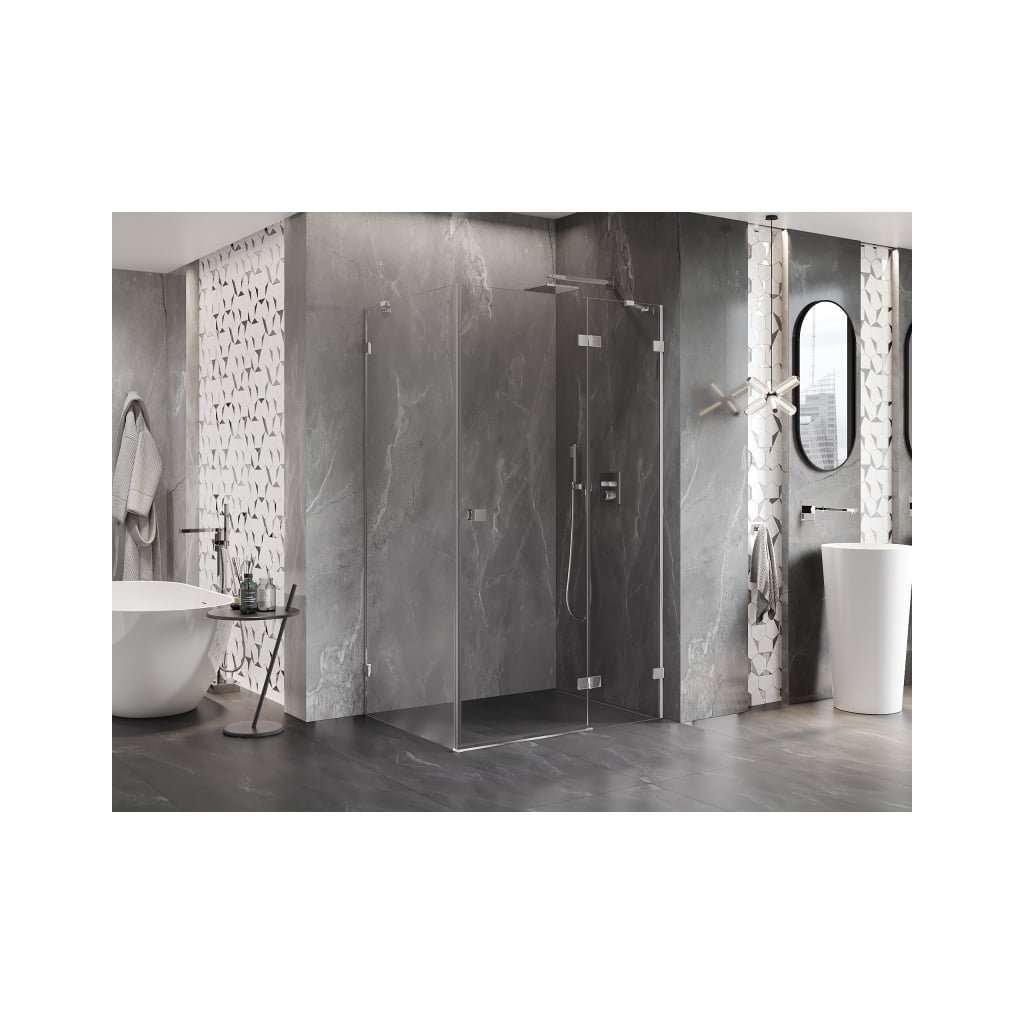 70 × 90 cm-es konfigurációban stabil szerkezetet és csuklós (szárnyas) ajtókat kínál. Az EasyClean felületű edzett üveg leegyszerűsíti a karbantartást, a króm profil pedig modern fürdőszobákba illik.