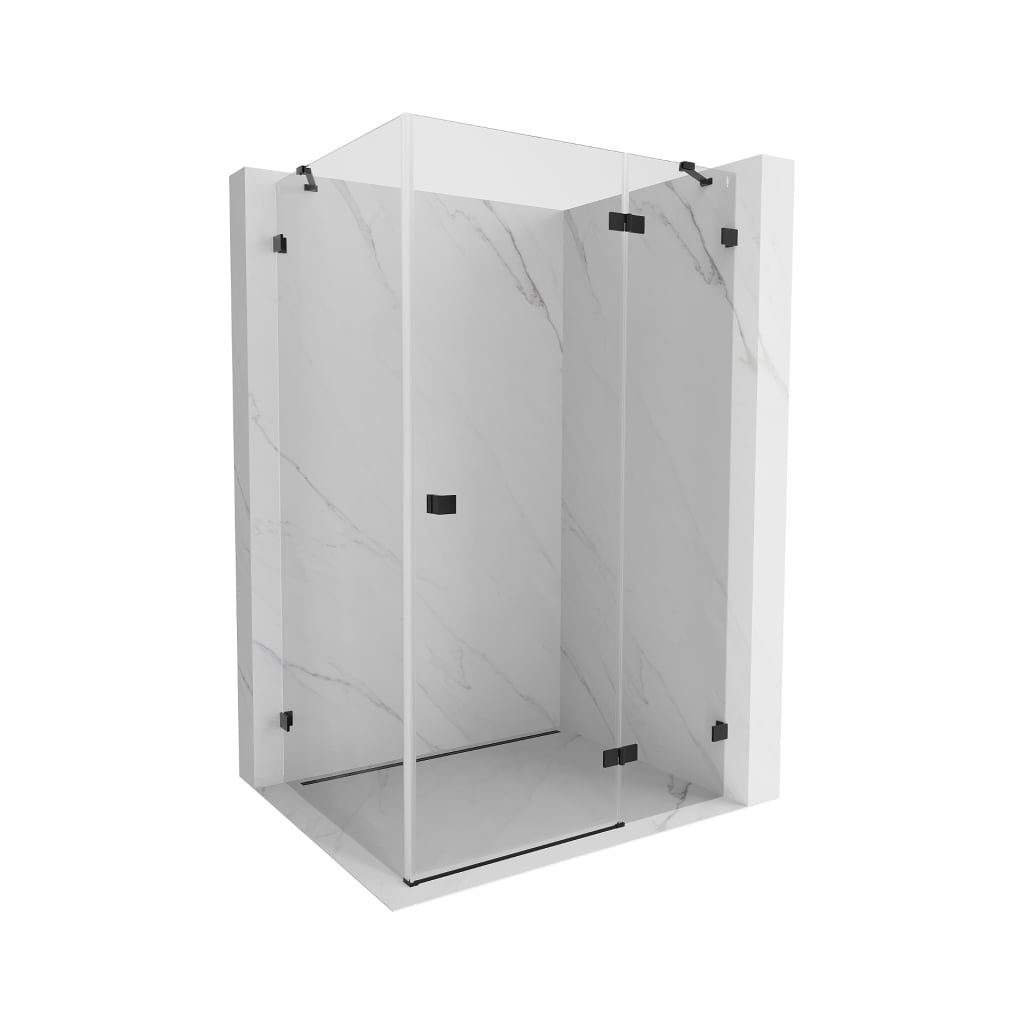 80 × 90 cm-es konfigurációban stabil szerkezetet és csuklós (szárnyas) ajtókat kínál. Az EasyClean felületű edzett üveg leegyszerűsíti a karbantartást, a fekete profil pedig modern fürdőszobákba illik.