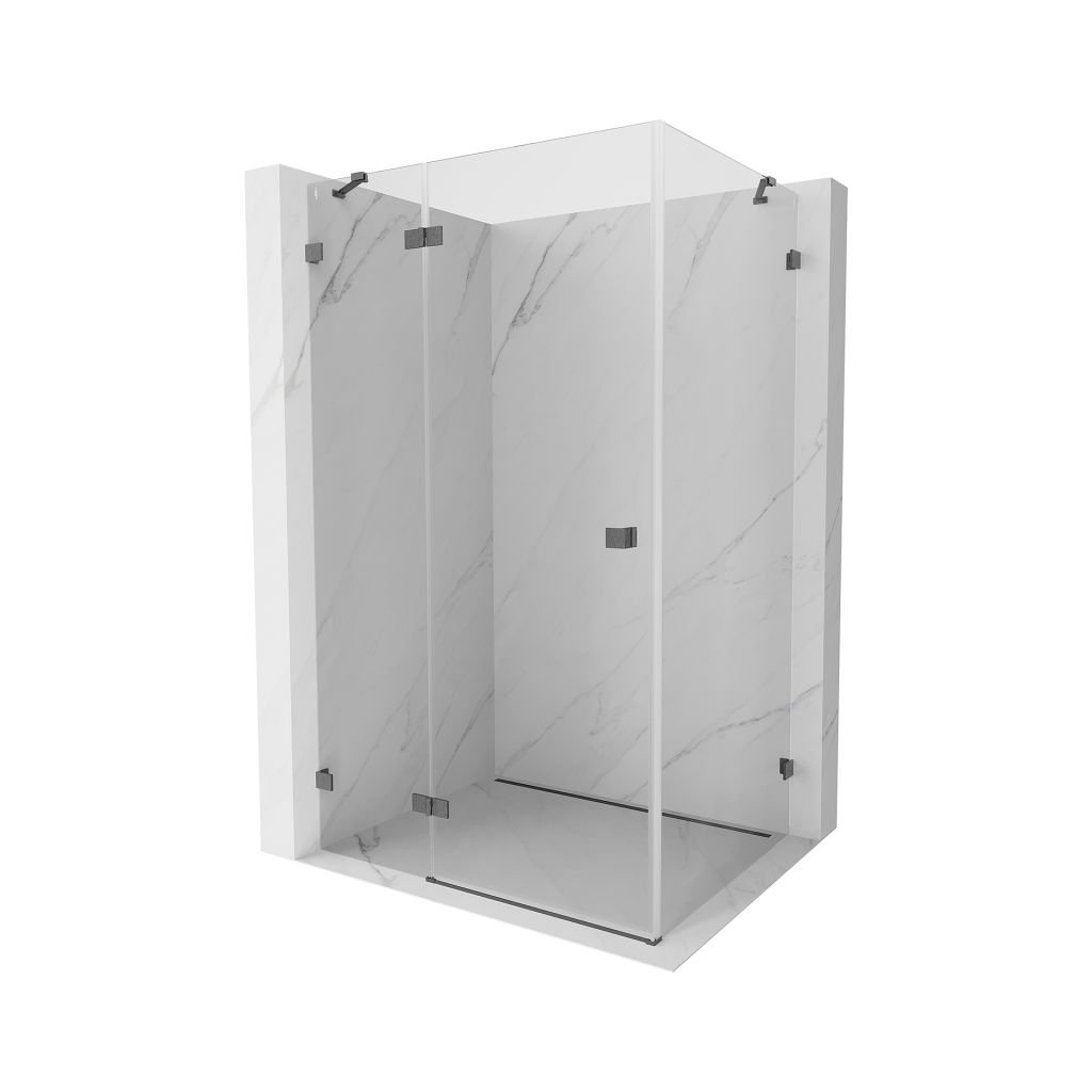 85 × 90 cm-es konfigurációban stabil szerkezetet és csuklós (szárnyas) ajtókat kínál. Az EasyClean felületű edzett üveg leegyszerűsíti a karbantartást, a szálcsiszolt grafit profil pedig modern fürdőszobákba illik.