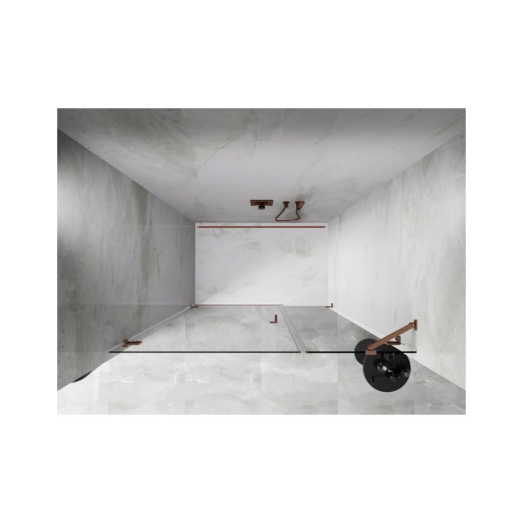 Több méretben kapható, stabil szerkezettel és csuklós ajtókkal rendelkezik. Az EasyClean felületű edzett üveg leegyszerűsíti a karbantartást, a szálcsiszolt réz profil pedig modern fürdőszobákba illik.