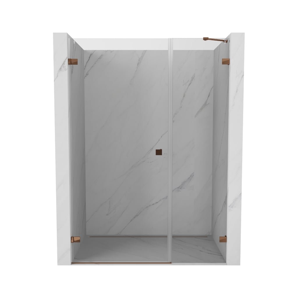 Több méretben kapható, stabil szerkezettel és csuklós ajtókkal rendelkezik. Az EasyClean felületű edzett üveg leegyszerűsíti a karbantartást, a rozéarany profil pedig modern fürdőszobákba illik.