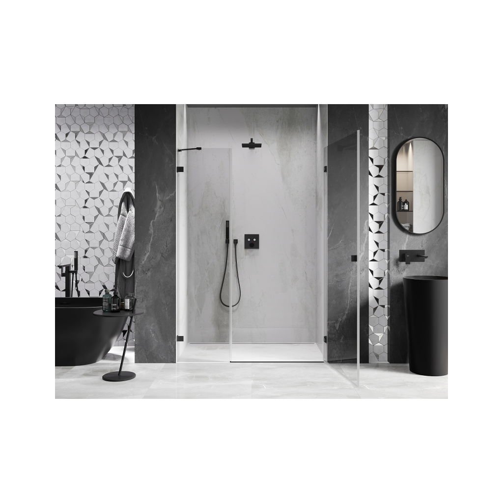 Több méretben kapható, stabil szerkezettel és csuklós ajtókkal rendelkezik. Az EasyClean felületű edzett üveg leegyszerűsíti a karbantartást, a fekete profil pedig modern fürdőszobákba illik.