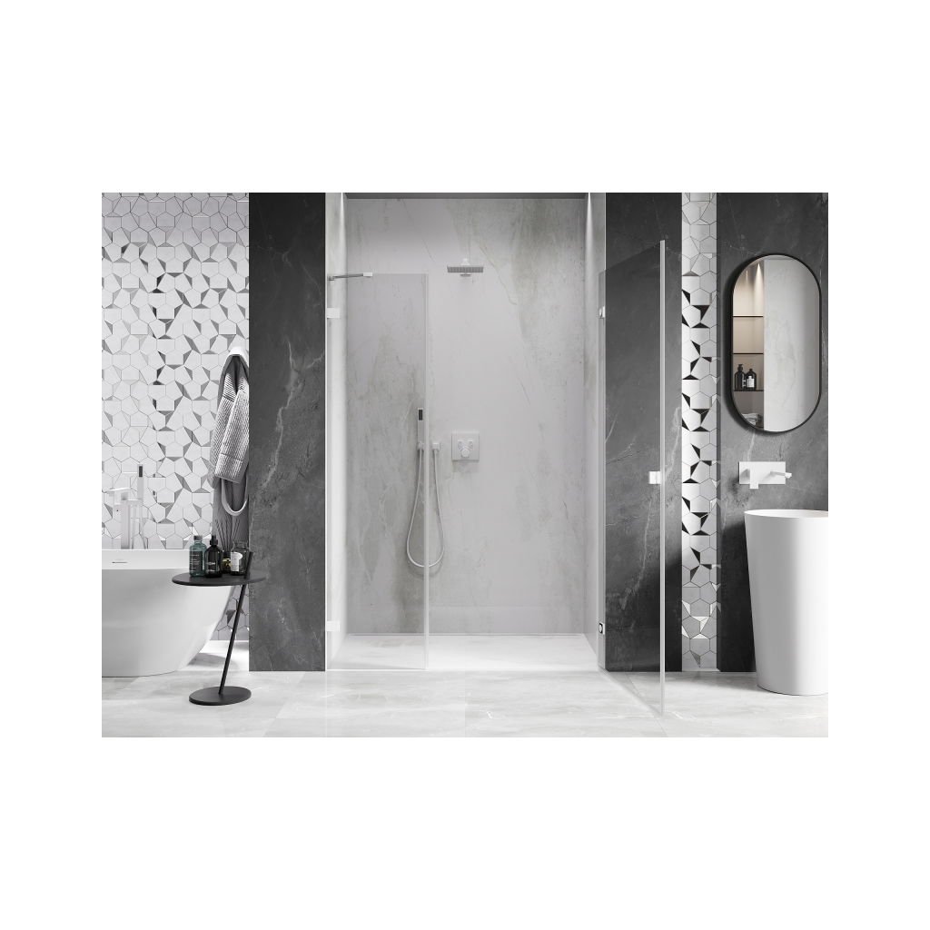 Több méretben kapható, stabil szerkezettel és csuklós ajtókkal rendelkezik. Az EasyClean felületű edzett üveg leegyszerűsíti a karbantartást, a fehér profil pedig modern fürdőszobákba illik.
