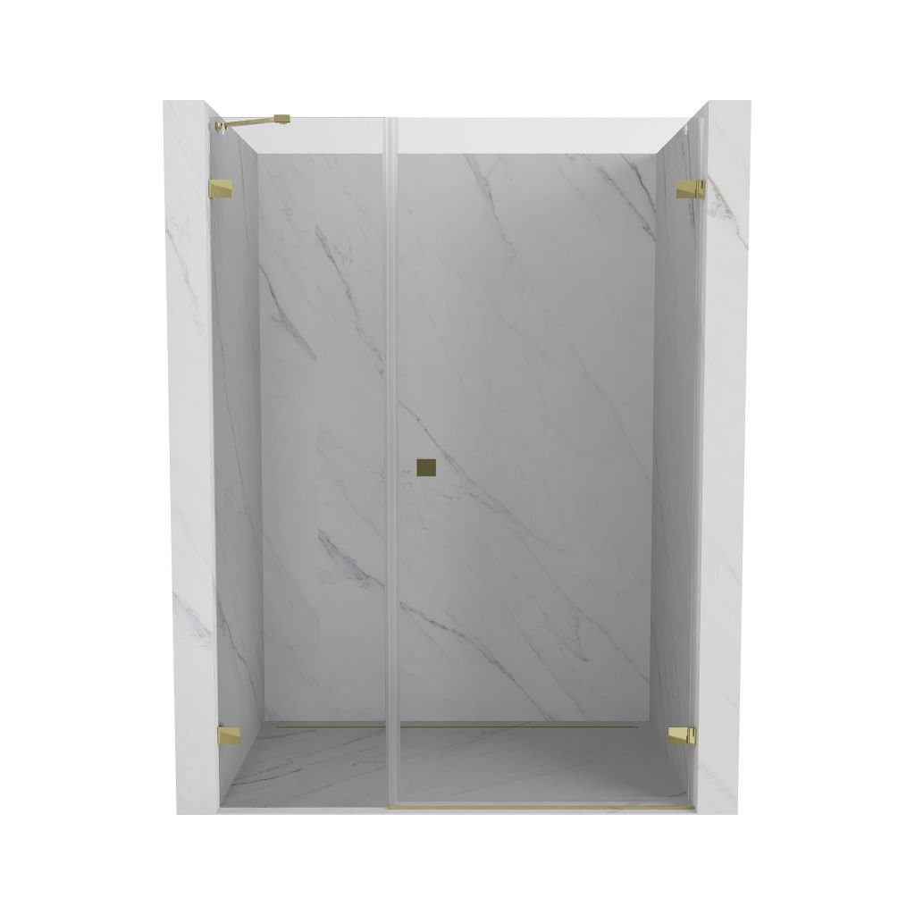 Több méretben kapható, stabil szerkezettel és csuklós ajtókkal rendelkezik. Az EasyClean felületű edzett üveg leegyszerűsíti a karbantartást, a fényes arany profil pedig modern fürdőszobákba illik.