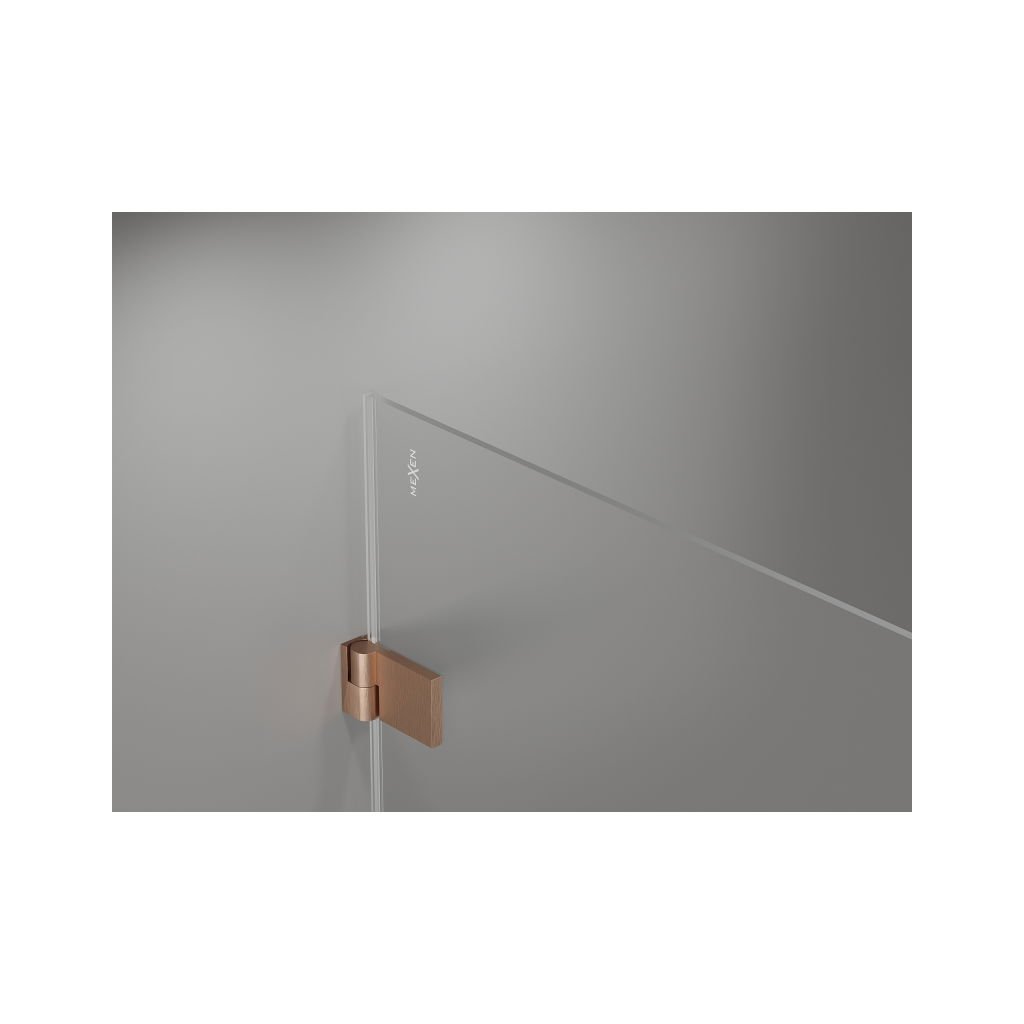 Több méretben kapható, stabil szerkezettel és csuklós ajtókkal rendelkezik. Az EasyClean felületű edzett üveg leegyszerűsíti a karbantartást, a szálcsiszolt réz profil pedig modern fürdőszobákba illik.