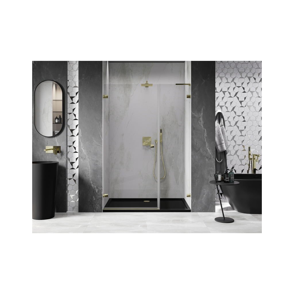 Több méretben kapható, stabil szerkezettel és csuklós ajtókkal rendelkezik. Az EasyClean felületű edzett üveg leegyszerűsíti a karbantartást, a fényes arany profil pedig modern fürdőszobákba illik.