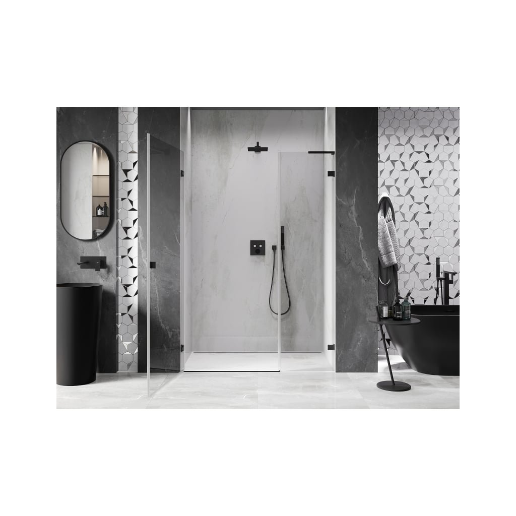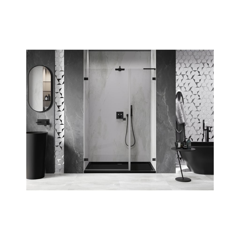 Több méretben kapható, stabil szerkezettel és csuklós ajtókkal rendelkezik. Az EasyClean felületű edzett üveg leegyszerűsíti a karbantartást, a fekete profil pedig modern fürdőszobákba illik.