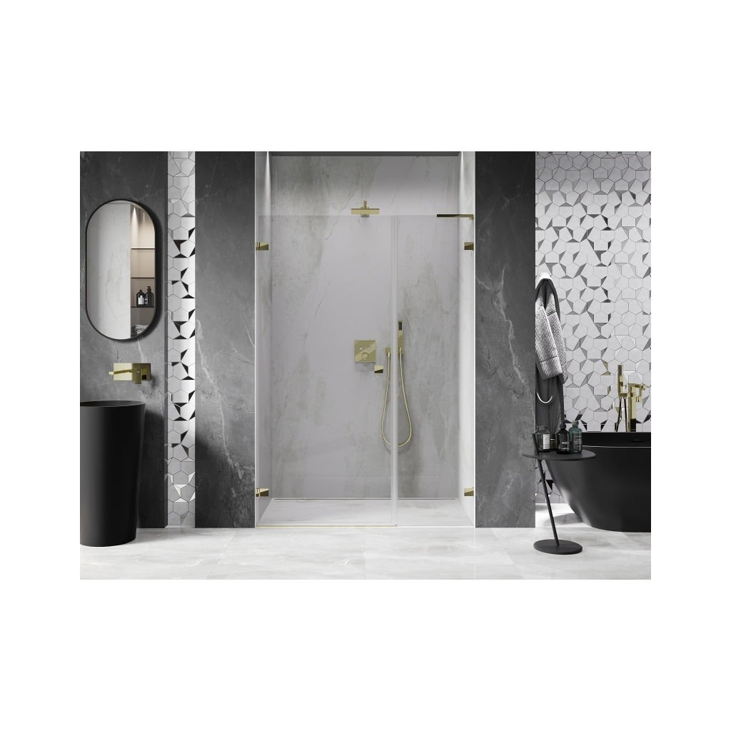 Több méretben kapható, stabil szerkezettel és csuklós ajtókkal rendelkezik. Az EasyClean felületű edzett üveg leegyszerűsíti a karbantartást, a fényes arany profil pedig modern fürdőszobákba illik.