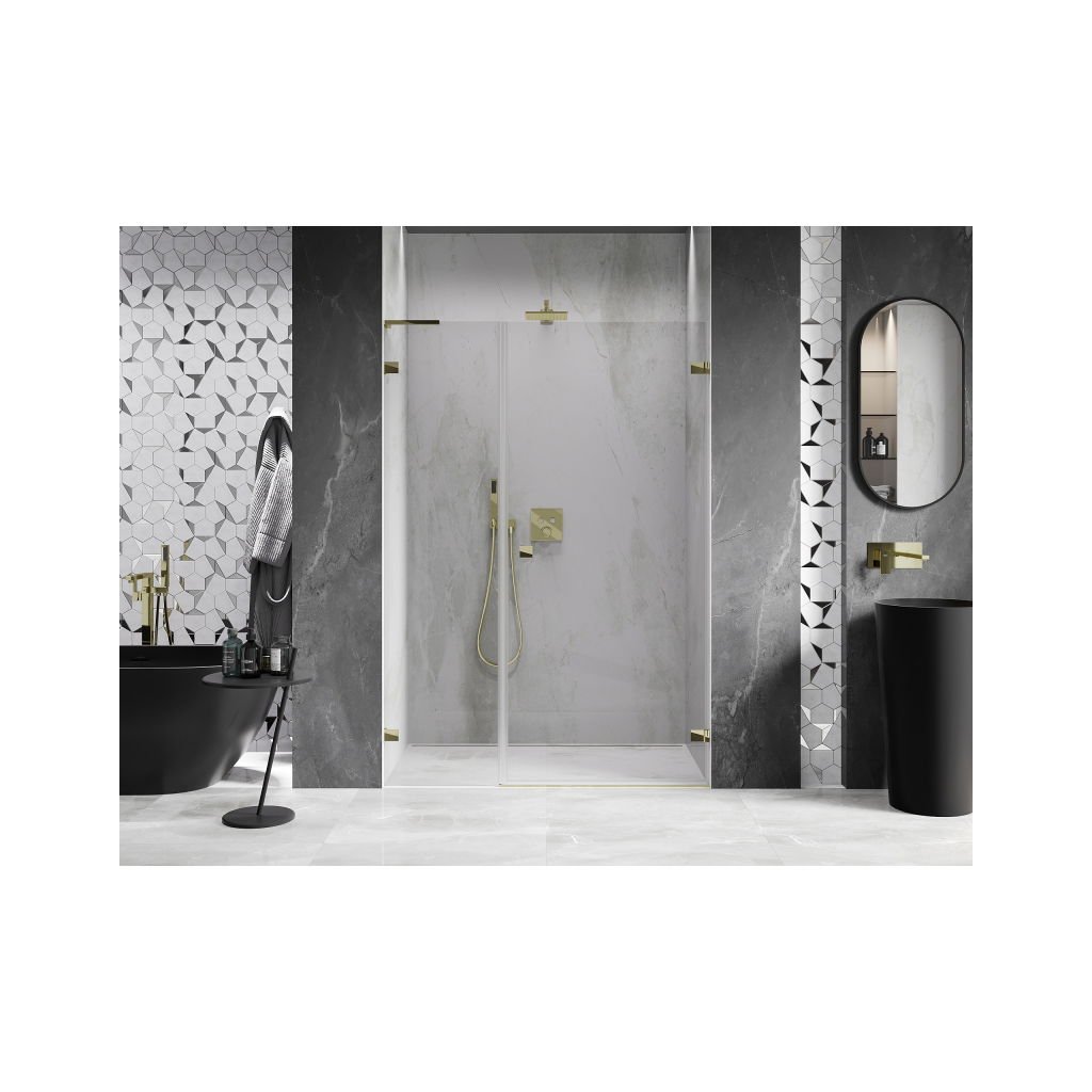 Több méretben kapható, stabil szerkezettel és csuklós ajtókkal rendelkezik. Az EasyClean felületű edzett üveg leegyszerűsíti a karbantartást, a fényes arany profil pedig modern fürdőszobákba illik.