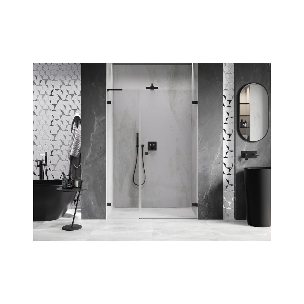 Több méretben kapható, stabil szerkezettel és csuklós ajtókkal rendelkezik. Az EasyClean felületű edzett üveg leegyszerűsíti a karbantartást, a fekete profil pedig modern fürdőszobákba illik.