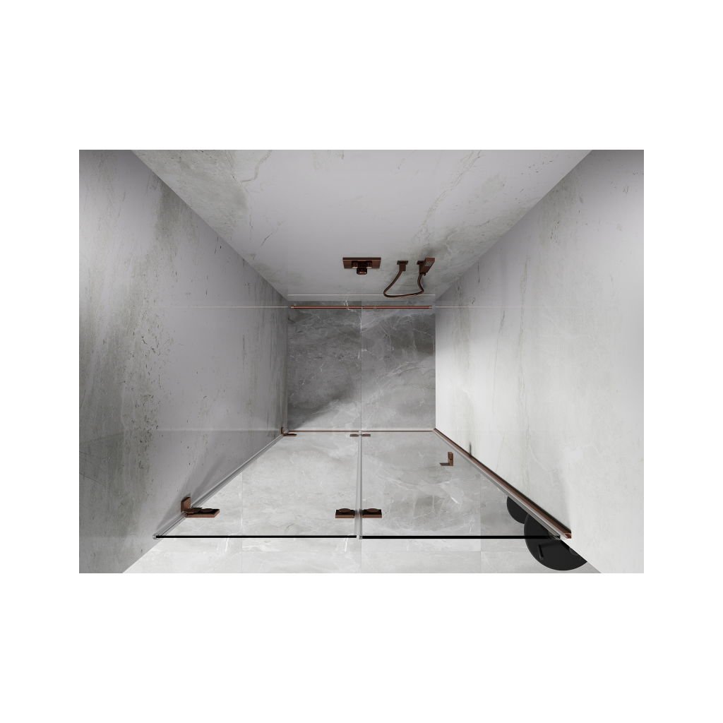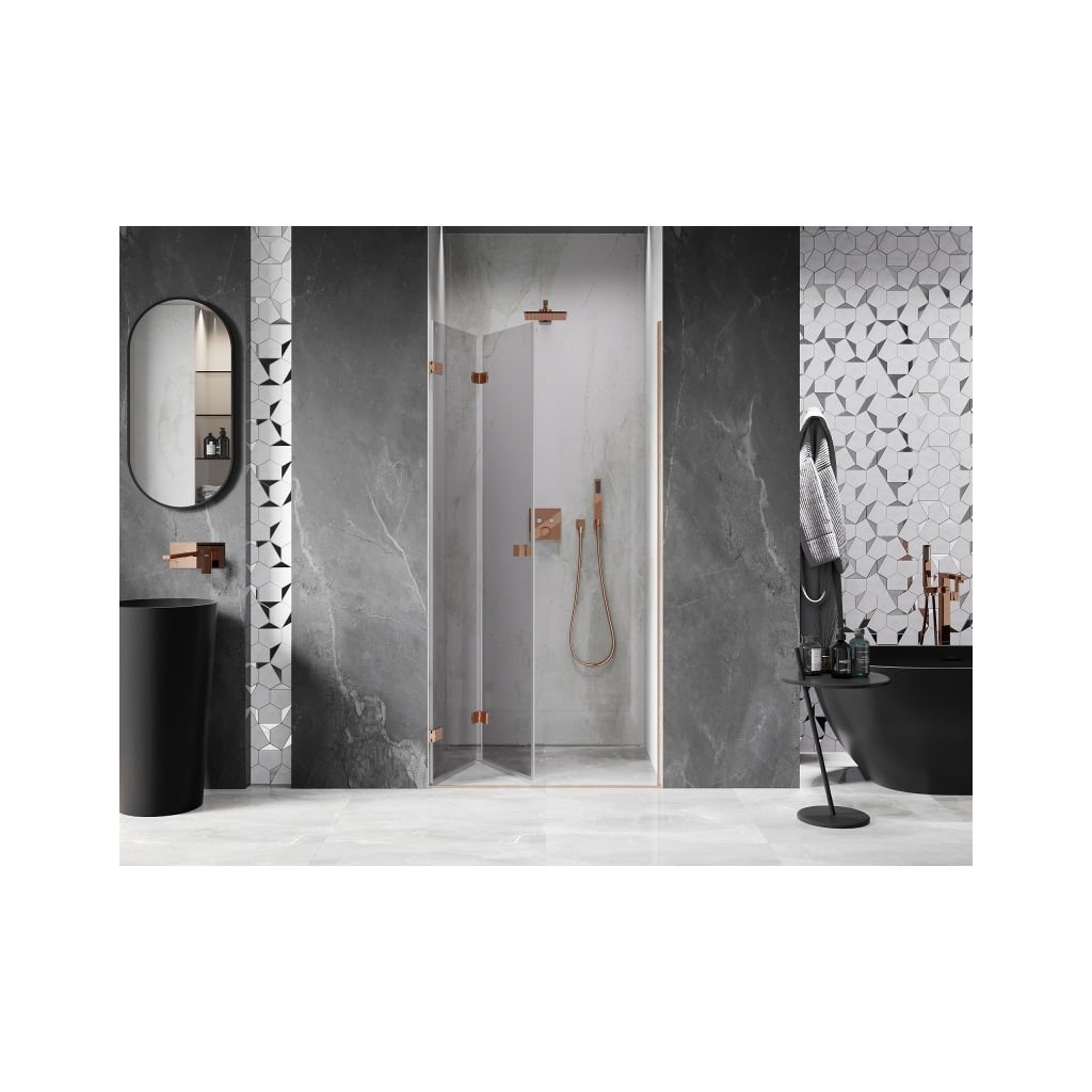 Több méretben kapható, stabil szerkezettel és harmonikaajtókkal rendelkezik. Az edzett üveg EasyClean felülettel megkönnyíti a karbantartást, a szálcsiszolt réz profil pedig modern fürdőszobákba illik.