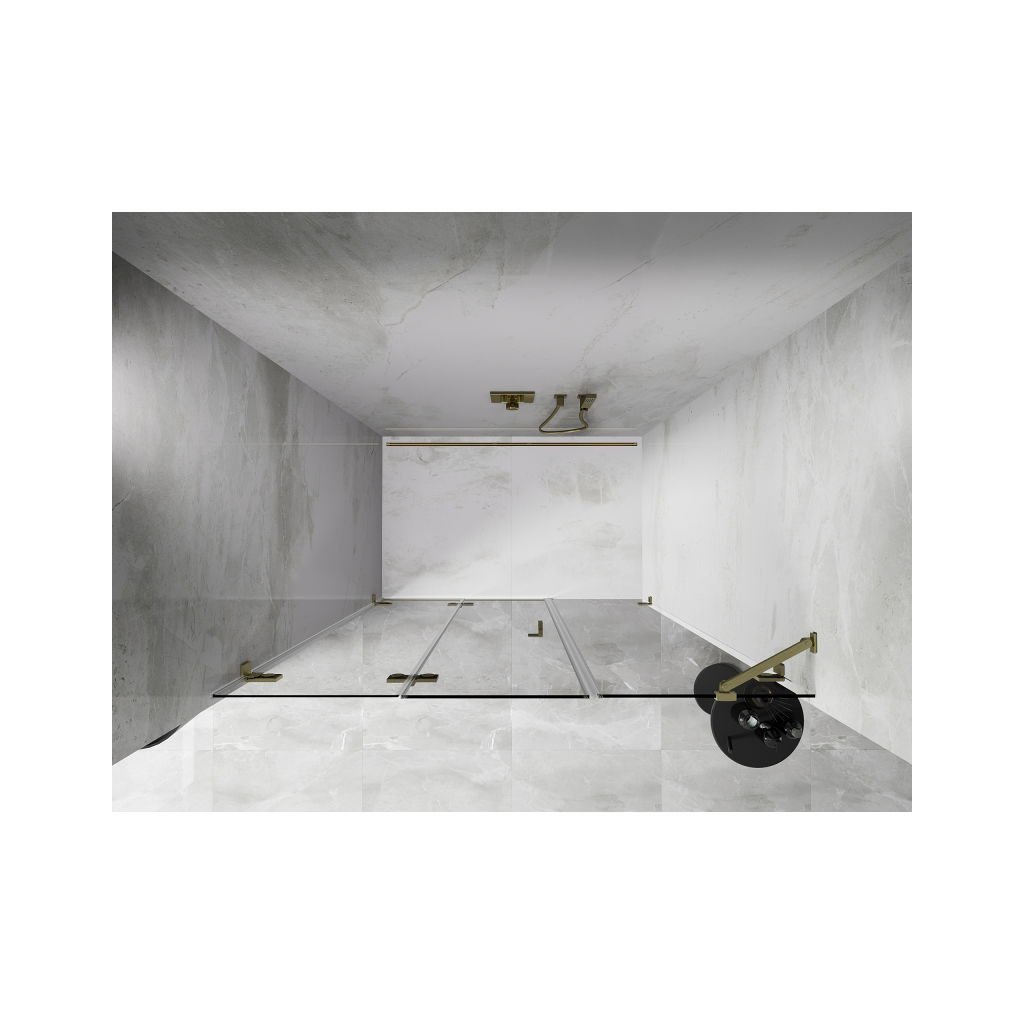 Több méretben kapható, stabil szerkezettel és harmonikaajtókkal rendelkezik. Az edzett üveg EasyClean felülettel megkönnyíti a karbantartást, a szálcsiszolt arany profil pedig illeszkedik a modern fürdőszobákba.