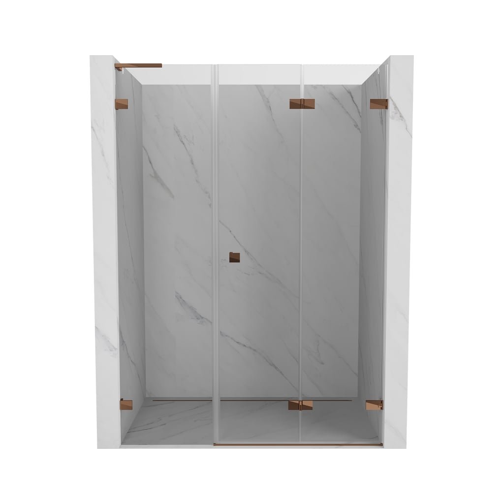 Több méretben kapható, stabil szerkezettel és harmonikaajtókkal rendelkezik. Az EasyClean felületű edzett üveg megkönnyíti a karbantartást, a rozéarany profil pedig illeszkedik a modern fürdőszobákba.