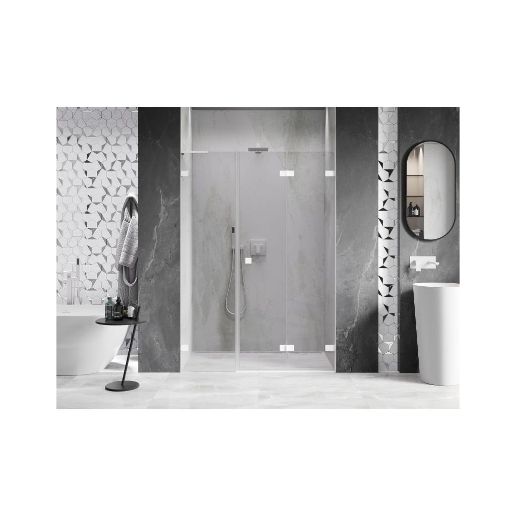 Több méretben kapható, stabil szerkezettel és harmonikaajtókkal rendelkezik. Az EasyClean felületű edzett üveg leegyszerűsíti a karbantartást, a fehér profil pedig modern fürdőszobákba illik.
