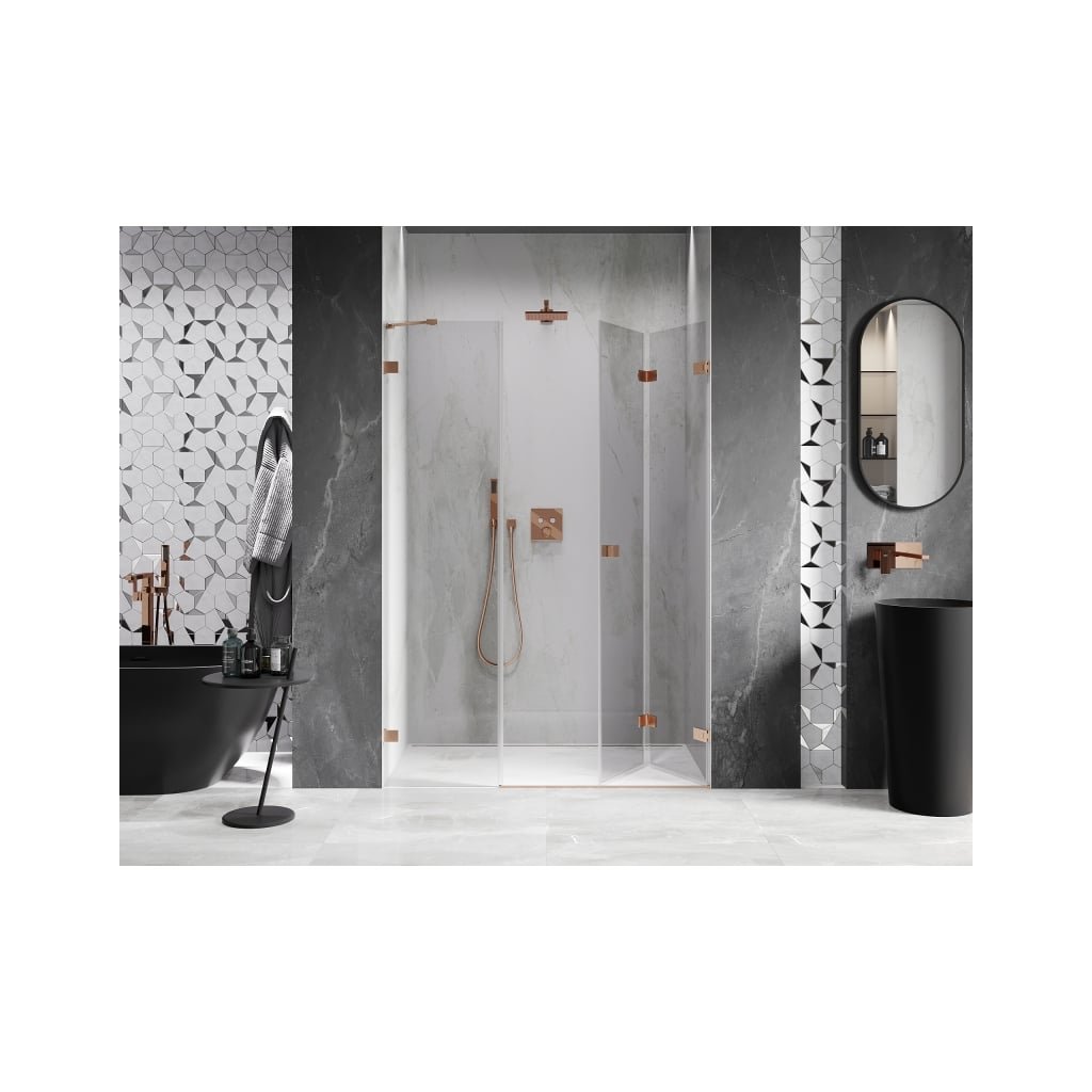 Több méretben kapható, stabil szerkezettel és harmonikaajtókkal rendelkezik. Az edzett üveg EasyClean felülettel megkönnyíti a karbantartást, a szálcsiszolt réz profil pedig modern fürdőszobákba illik.