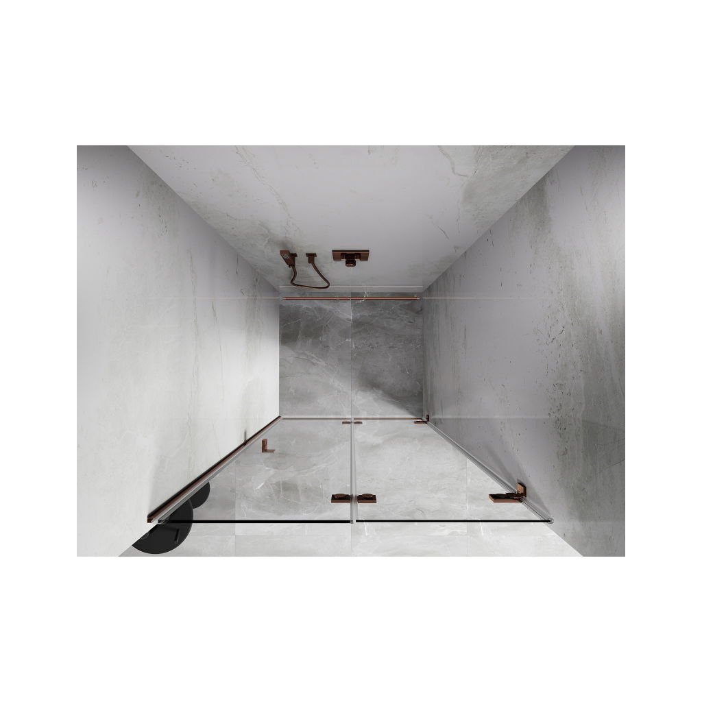 Több méretben kapható, stabil szerkezettel és harmonikaajtókkal rendelkezik. Az EasyClean felületű edzett üveg megkönnyíti a karbantartást, a rozéarany profil pedig modern fürdőszobákba illik.