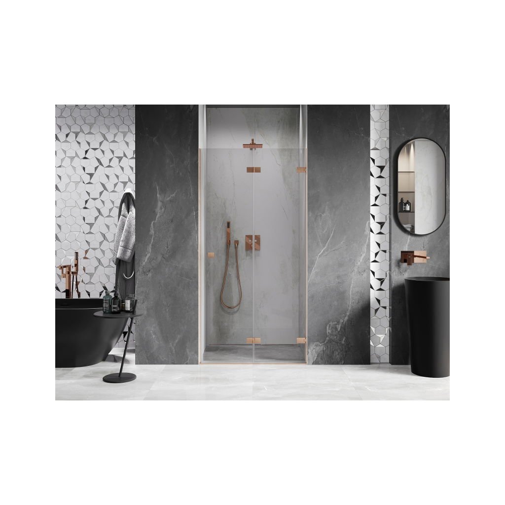 Több méretben kapható, stabil szerkezettel és harmonikaajtókkal rendelkezik. Az edzett üveg EasyClean felülettel megkönnyíti a karbantartást, a szálcsiszolt réz profil pedig modern fürdőszobákba illik.