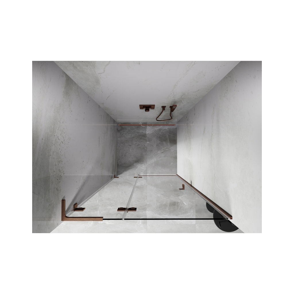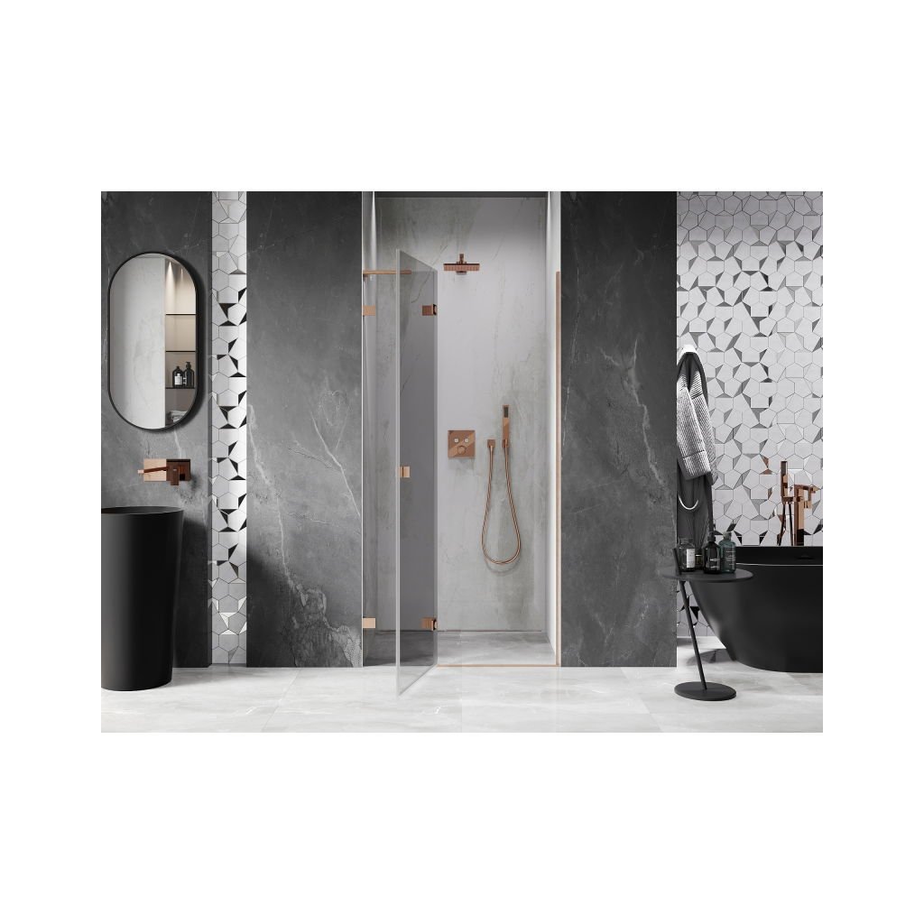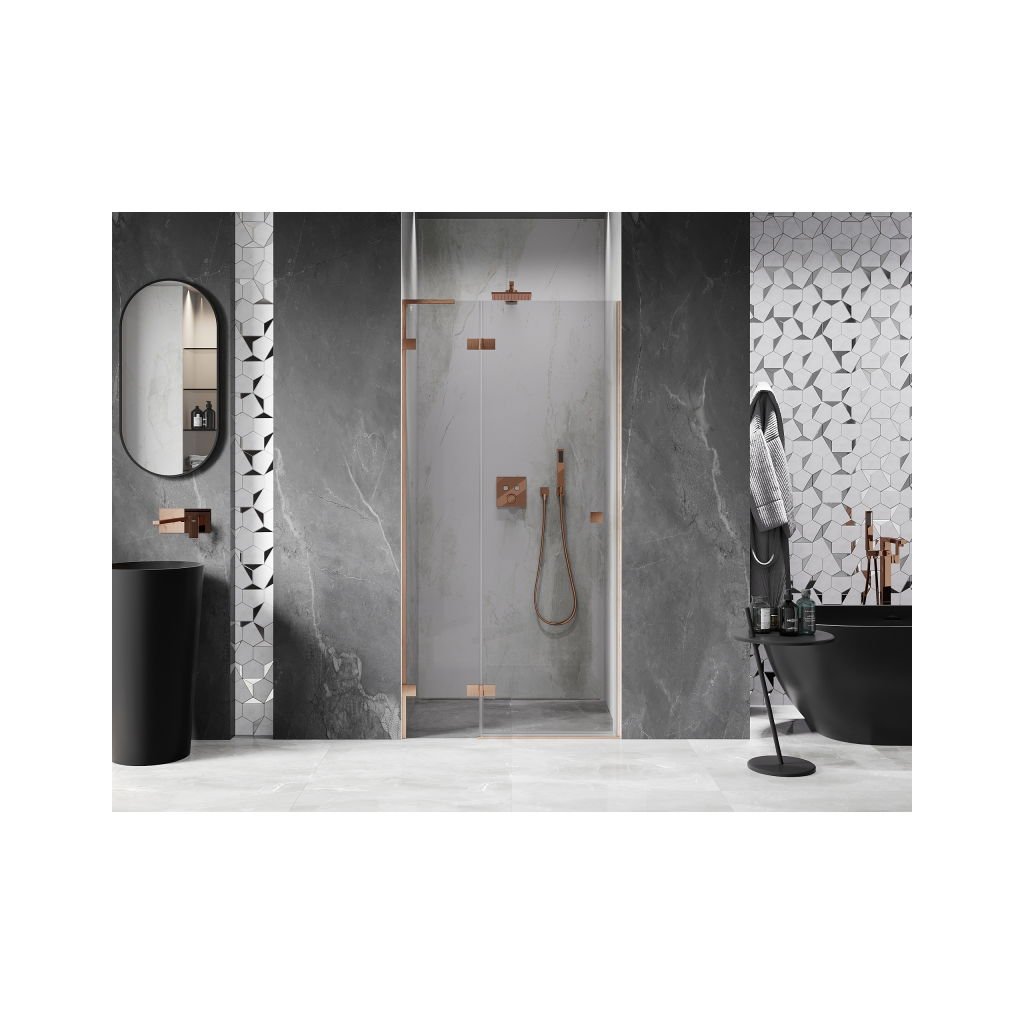 Több méretben kapható, stabil szerkezettel és csuklós ajtókkal rendelkezik. Az EasyClean felületű edzett üveg leegyszerűsíti a karbantartást, a szálcsiszolt réz profil pedig modern fürdőszobákba illik.