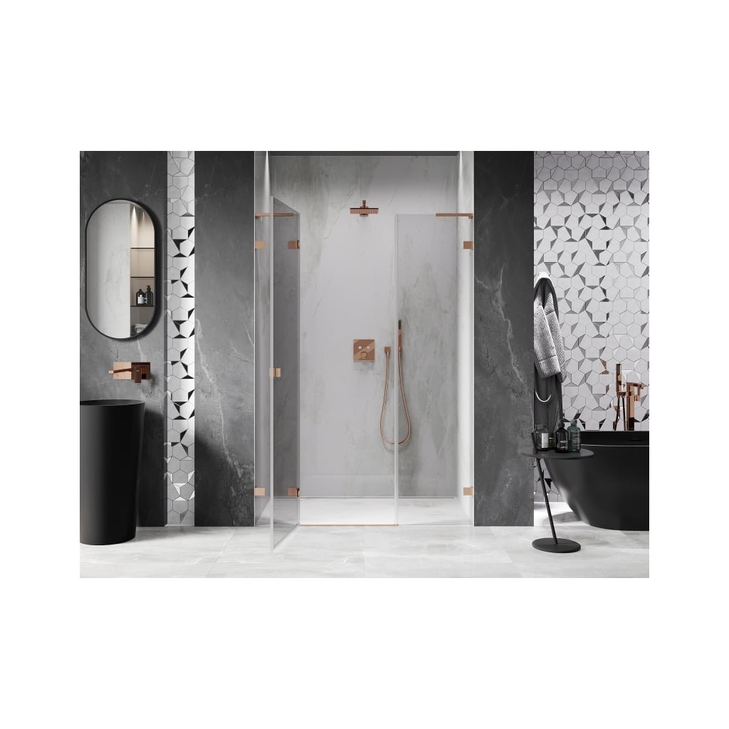 Több méretben kapható, stabil szerkezettel és csuklós ajtókkal rendelkezik. Az EasyClean felületű edzett üveg leegyszerűsíti a karbantartást, a szálcsiszolt réz profil pedig modern fürdőszobákba illik.