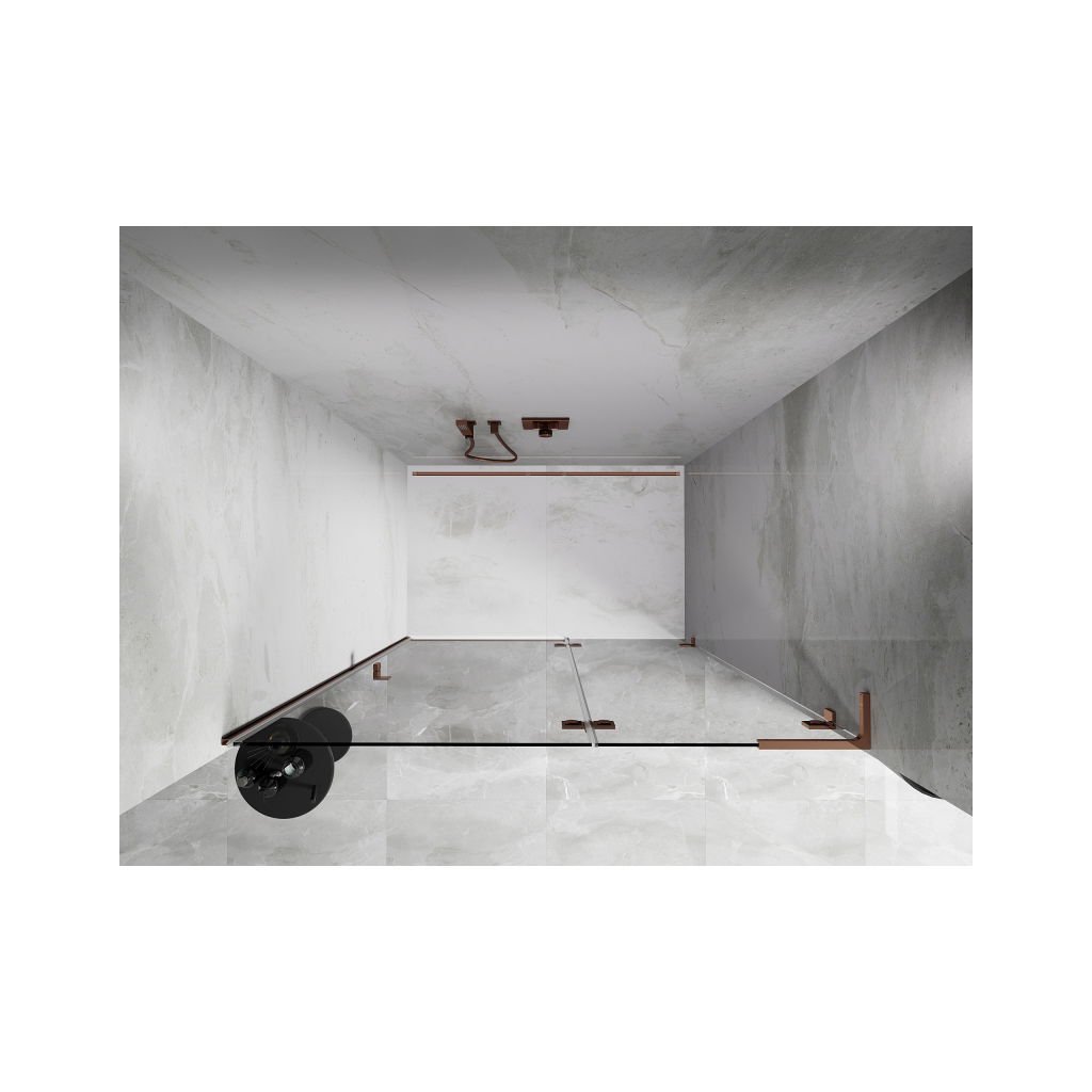 Több méretben kapható, stabil szerkezettel és csuklós ajtókkal rendelkezik. Az EasyClean felületű edzett üveg leegyszerűsíti a karbantartást, a rozéarany profil pedig modern fürdőszobákba illik.