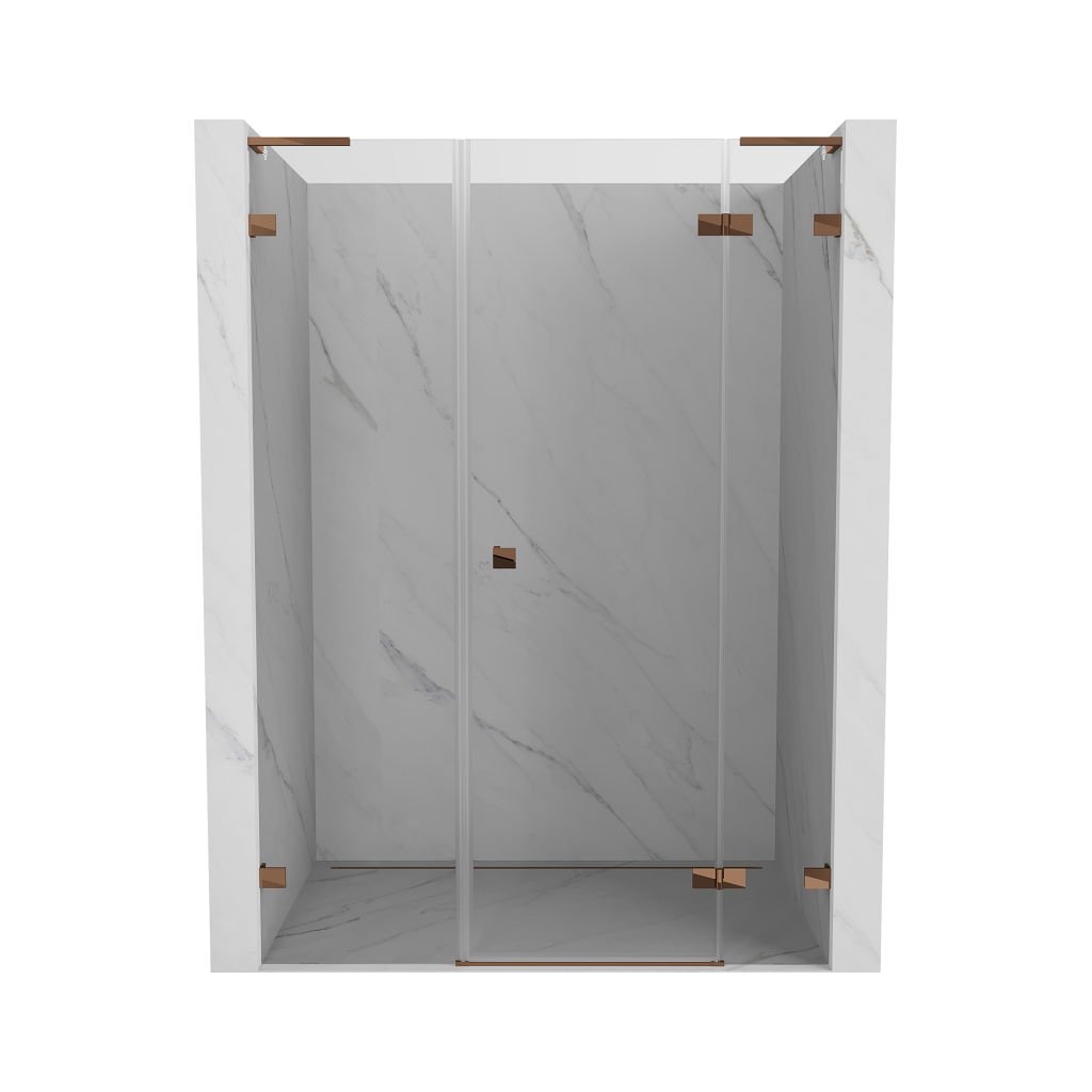 Több méretben kapható, stabil szerkezettel és csuklós ajtókkal rendelkezik. Az EasyClean felületű edzett üveg leegyszerűsíti a karbantartást, a rozéarany profil pedig modern fürdőszobákba illik.