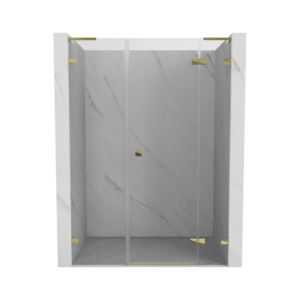 Több méretben kapható, stabil szerkezettel és csuklós ajtókkal rendelkezik. Az EasyClean felületű edzett üveg leegyszerűsíti a karbantartást, a fényes arany profil pedig modern fürdőszobákba illik.