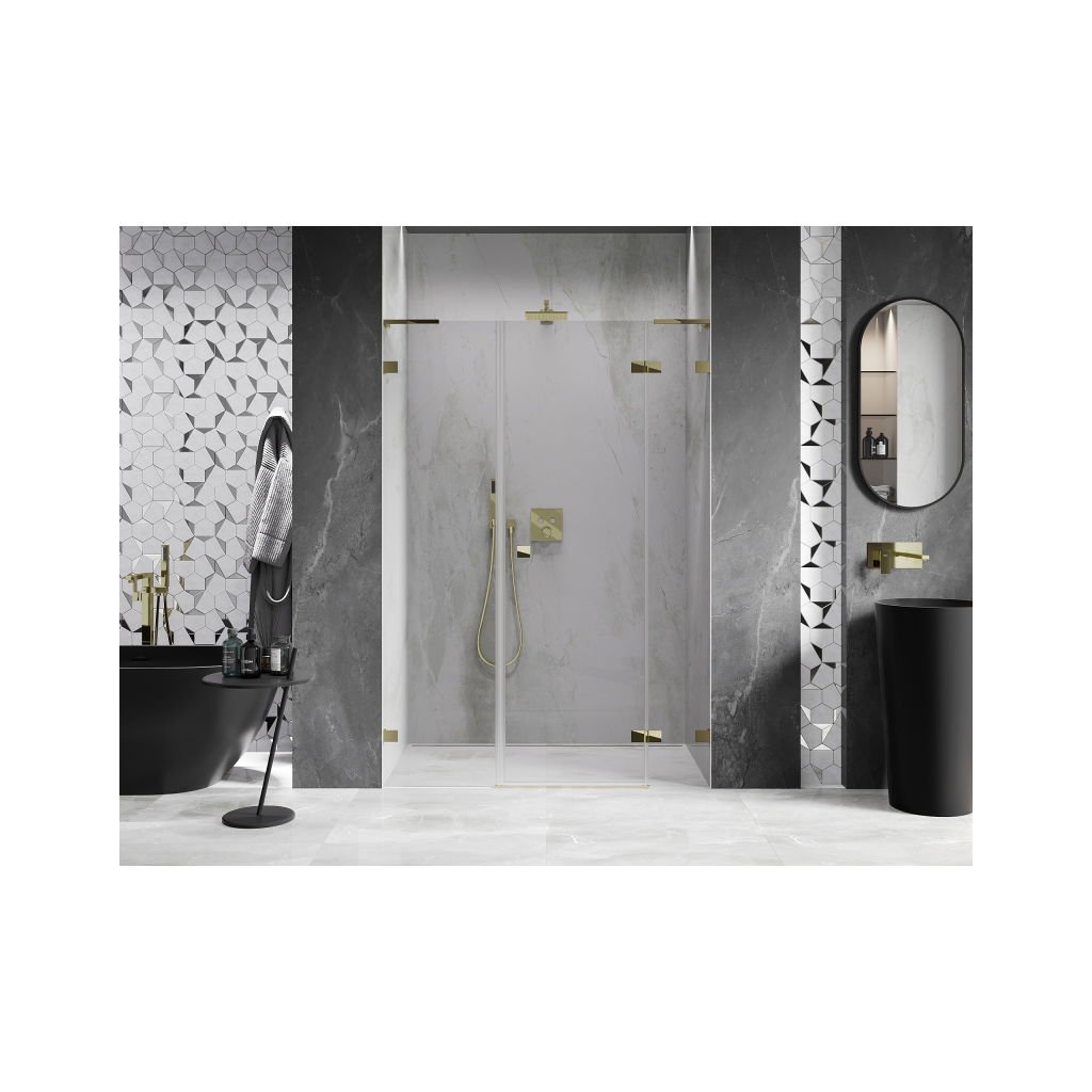 Több méretben kapható, stabil szerkezettel és csuklós ajtókkal rendelkezik. Az EasyClean felületű edzett üveg leegyszerűsíti a karbantartást, a fényes arany profil pedig modern fürdőszobákba illik.