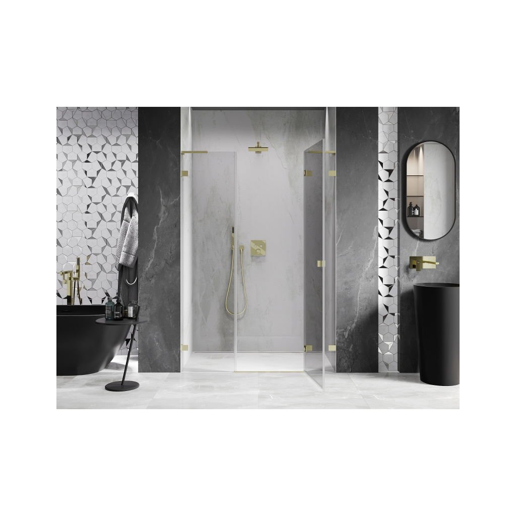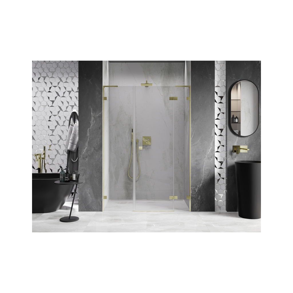 Több méretben kapható, stabil szerkezettel és csuklós ajtókkal rendelkezik. Az EasyClean felületű edzett üveg leegyszerűsíti a karbantartást, a szálcsiszolt arany profil pedig modern fürdőszobákba illik.
