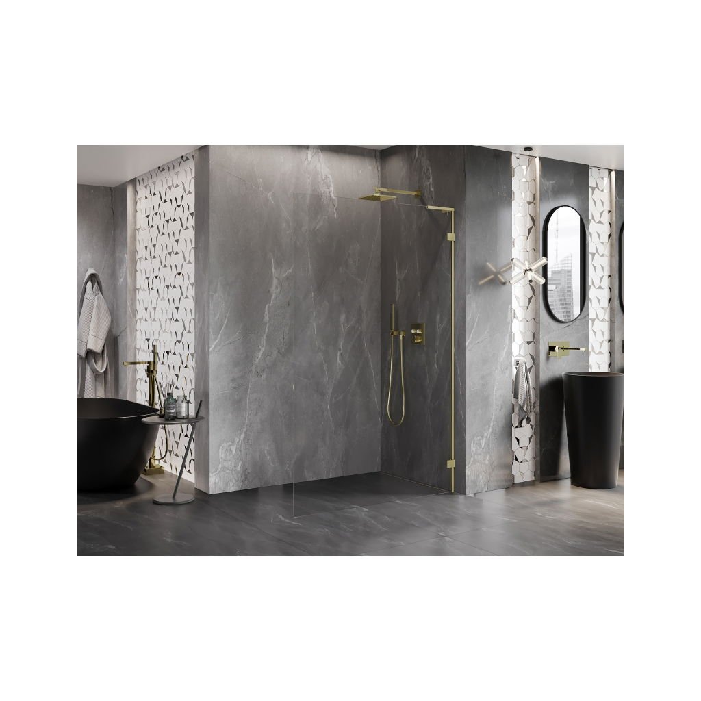 Több méretben kapható, stabil szerkezettel és ajtókkal rendelkezik. Az EasyClean felületű edzett üveg megkönnyíti a karbantartást, a szálcsiszolt arany profil pedig modern fürdőszobákba illik.