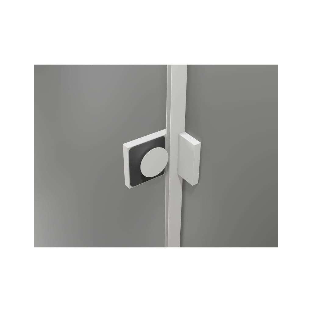90 × 120 cm-es konfigurációban stabil szerkezetet és csuklós (szárnyas) ajtókat kínál. Az EasyClean felületű edzett üveg leegyszerűsíti a karbantartást, a fehér profil pedig modern fürdőszobákba illik.