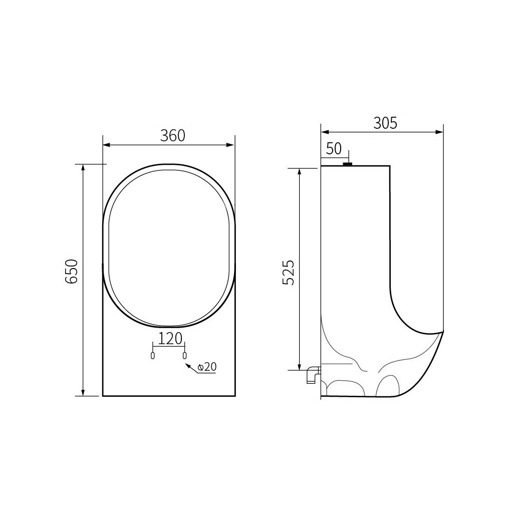 Mexen Mateo, függő piszoár 65x36x30,5 cm, fehér, 37036500