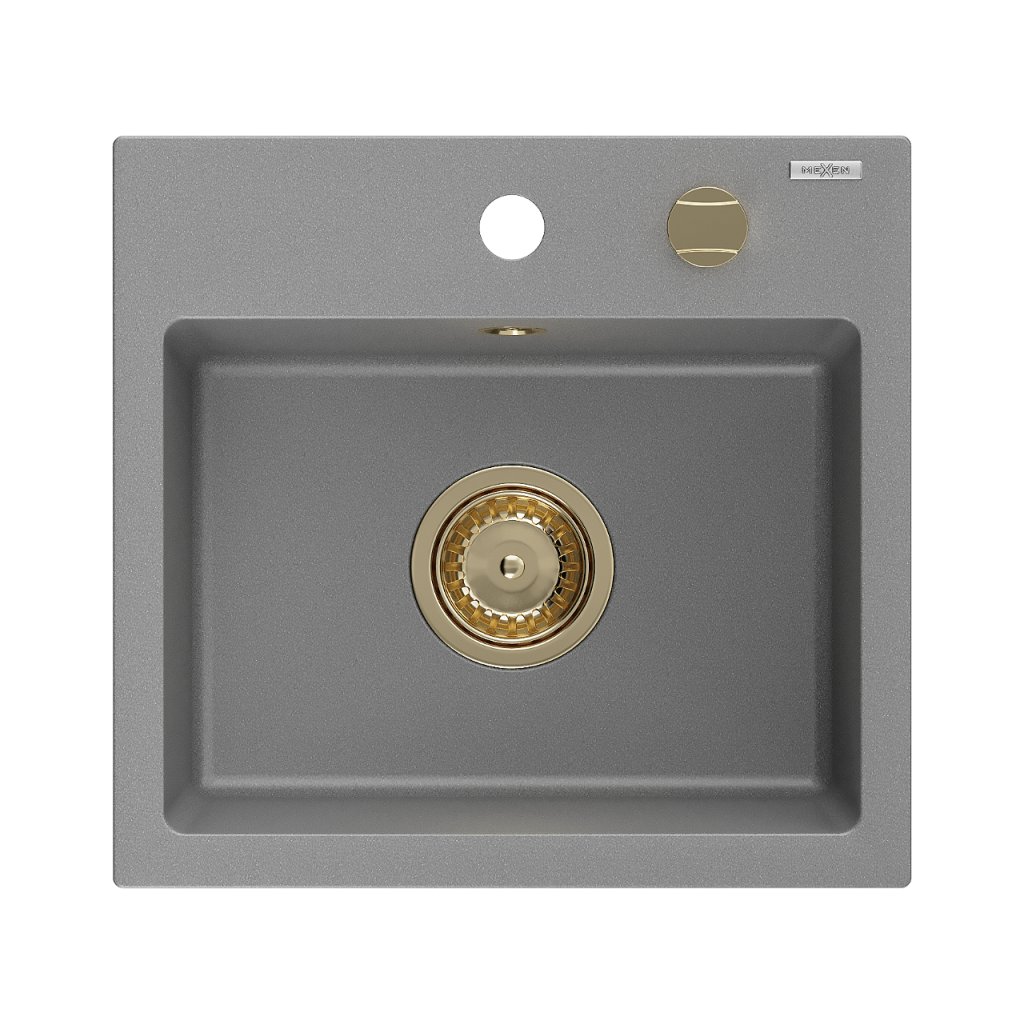 Mexen Milo, gránit mosogató 435x410x171 mm, 1 kamrás, szürke, arany szifonnal, 6505441000-71-G